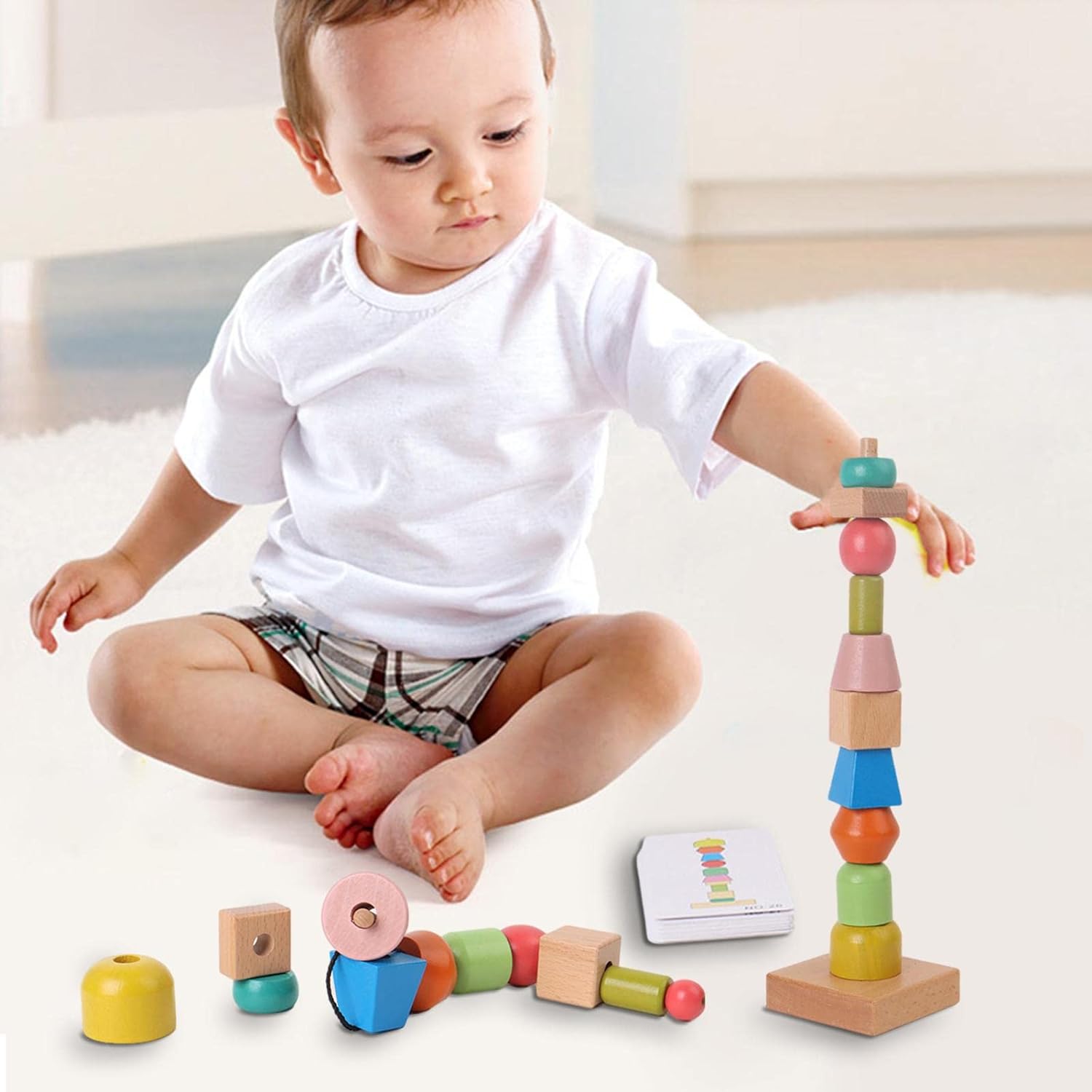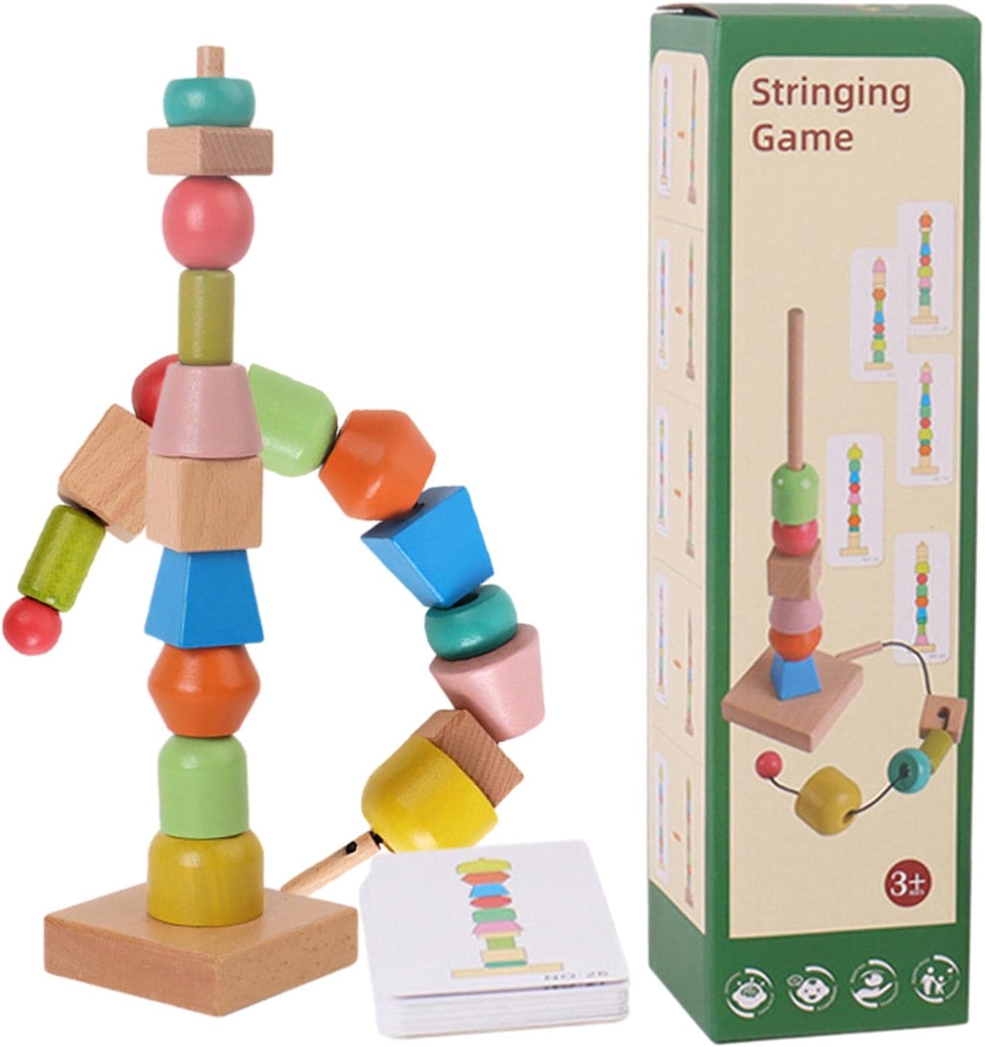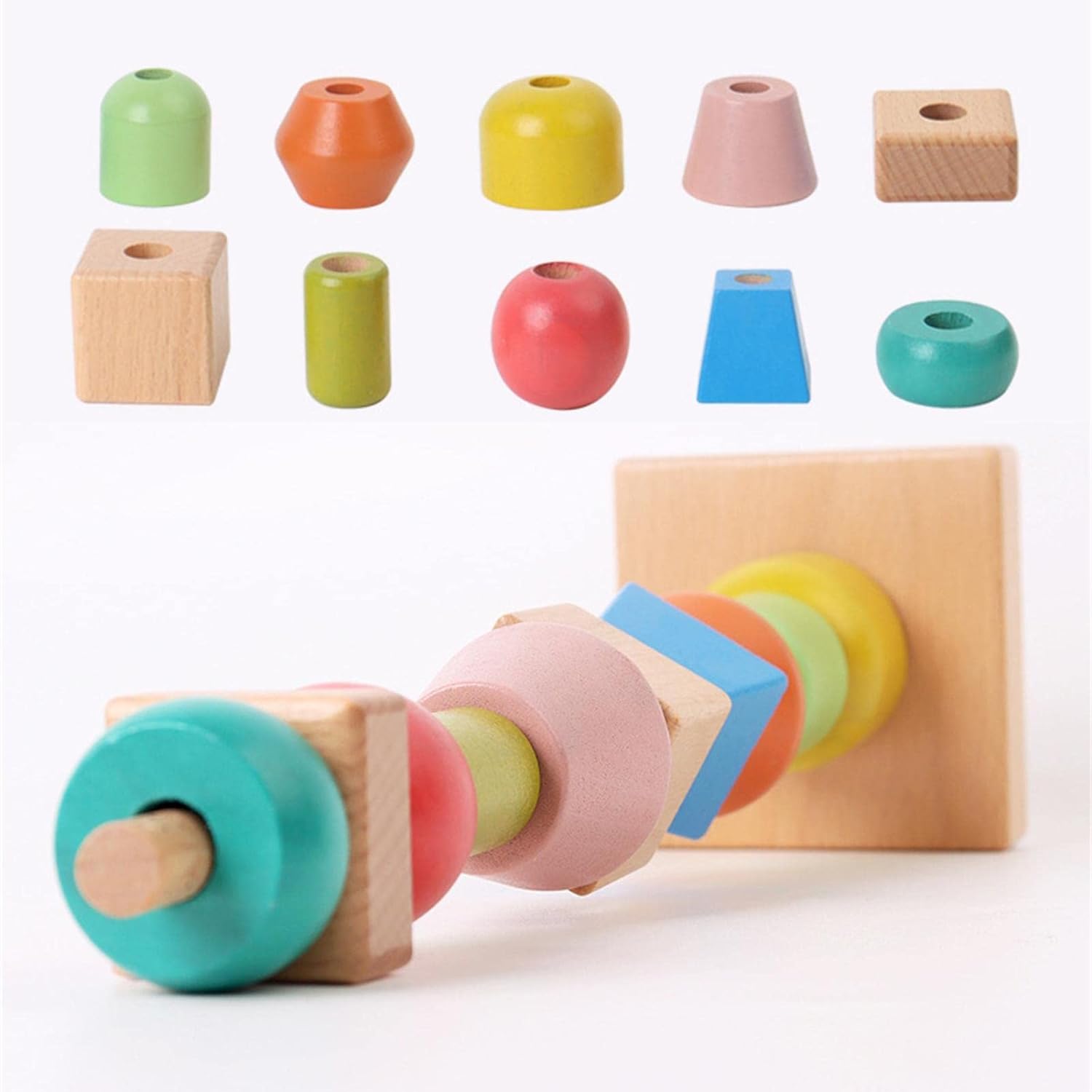 【Funcionamiento】El juego de cuentas de hilo arcoíris mejora la capacidad de manejo de los niños, lo que mejora aún más la coordinación ojo-mano y ayuda al bebé a aprender conocimientos básicos de las formas adecuadas.