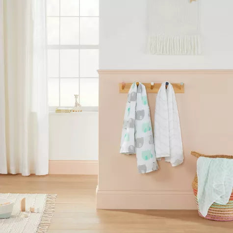 Da la bienvenida a tu pequeño al mundo con las mantas de muselina Mint Elephants de Cloud Island™. El delicado elefante y los patrones geométricos en crema y verde están hechos especialmente para tu precioso recién nacido. El material 100% algodón será suave y delicado con su piel nueva y tierna y los hará sentir muy seguros cuando estén acurrucados cerca. Con tres en un paquete, siempre podrás tener uno a mano.