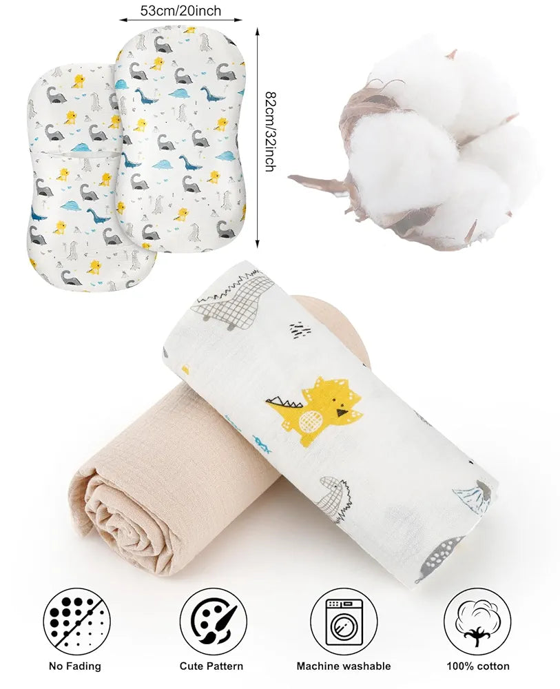 Algodón de muselina suave: nuestras fundas de muselina están hechas de algodón de alta calidad, en comparación con los productos de algodón normales, se sienten súper suaves y suaves al tacto, agradables al tacto y transpirables, más adecuadas para la delicada piel del bebé.