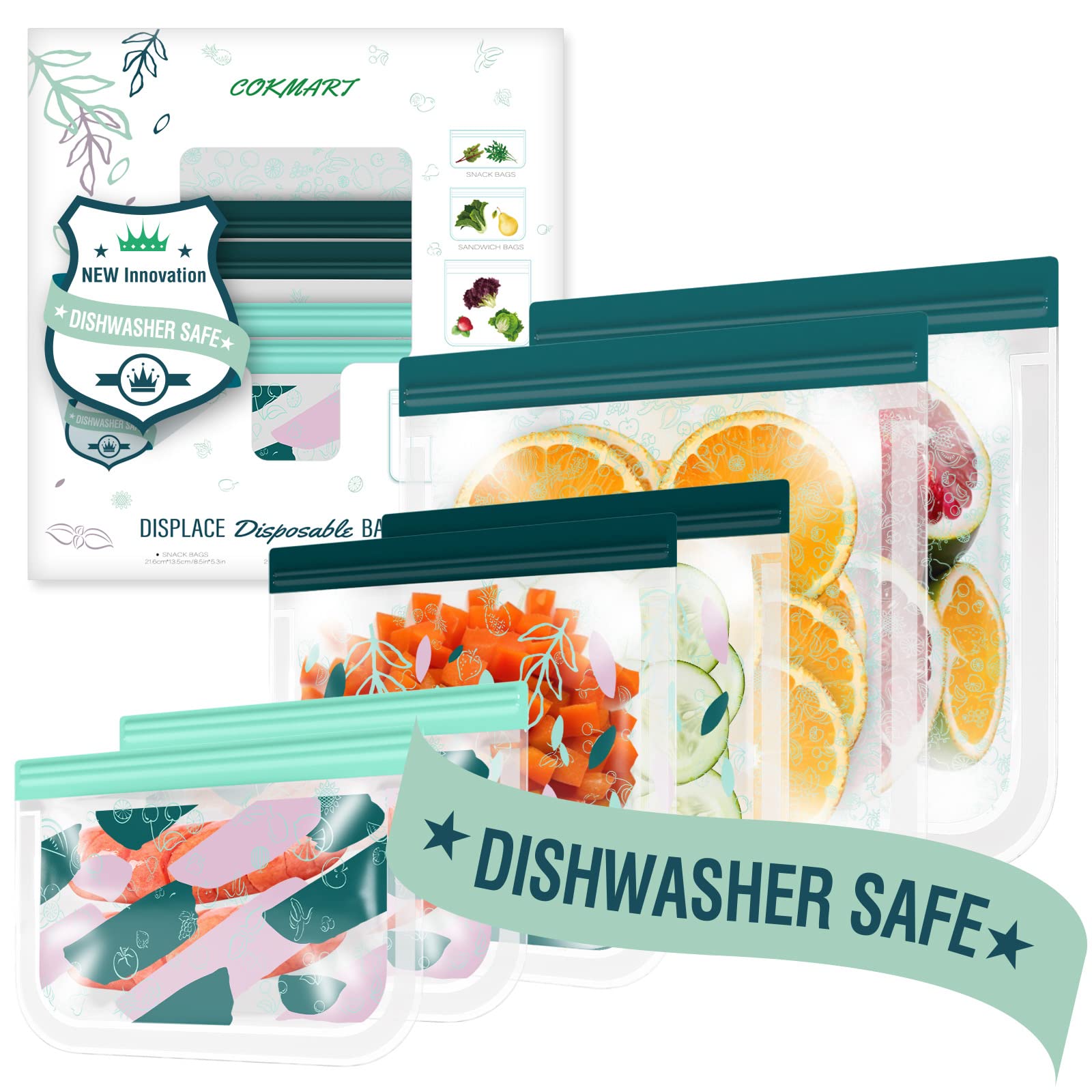 Cokmart- Bolsas reutilizables de silicona para almacenamiento de alimentos, 6 pack