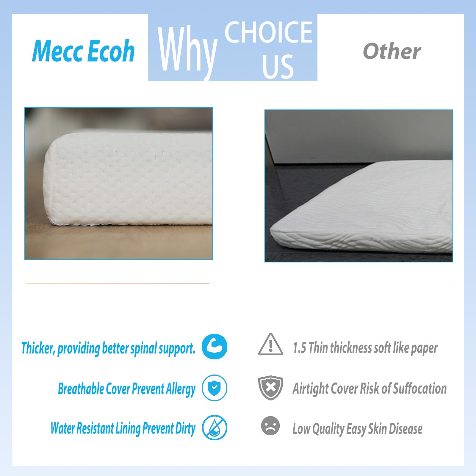 - Máxima portabilidad: perfecto para familias en movimiento, el colchón portátil Mecc ecoh Pack and Play es ligero y fácil de llevar, lo que hace que viajar y salir con tu bebé sea muy fácil.