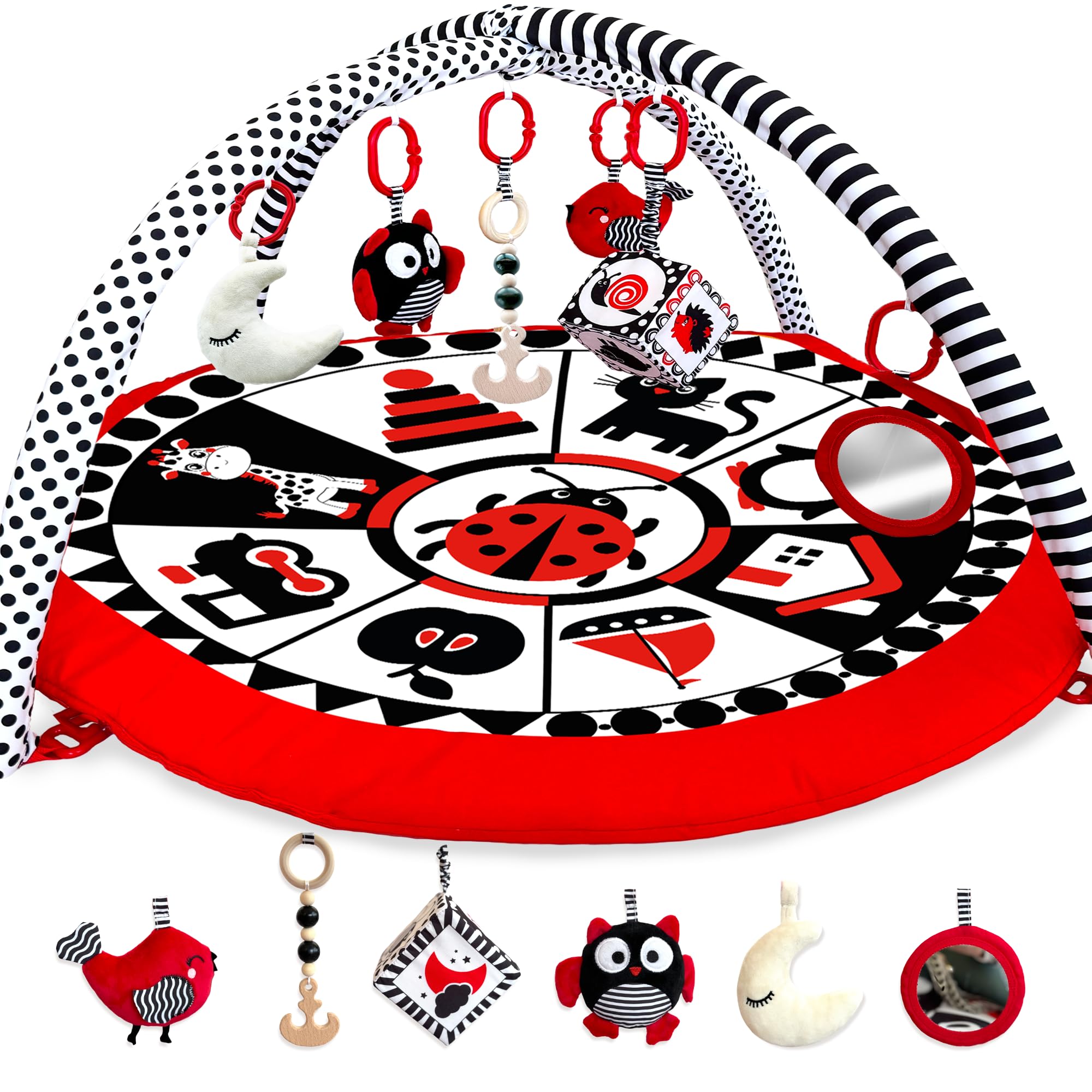Colchoneta de gimnasio acolchada para bebés QUOKKA para jugar boca abajo en el suelo - Alto contraste