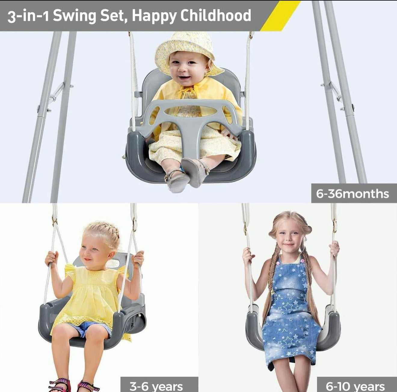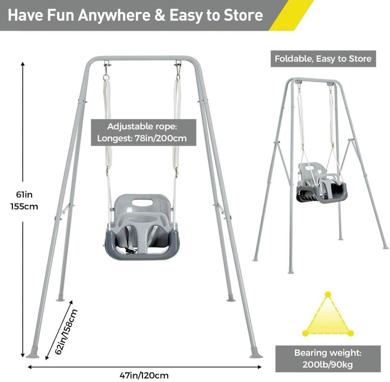 Columpio para niños pequeños con soporte de metal plegable para niños pequeños de 1 a 10 años