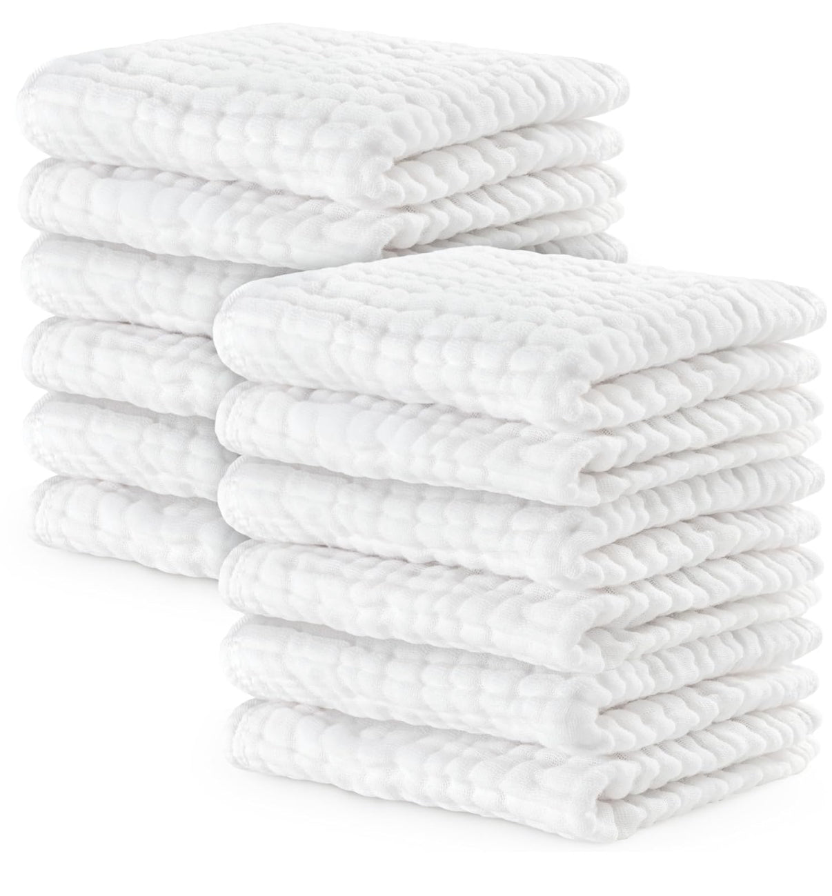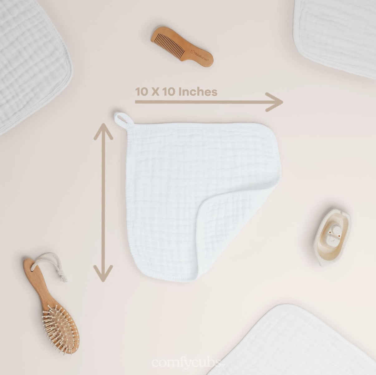 Comfy Cubs Toallitas de muselina para bebé, Paquete de 10, trapos suaves de algodón, 6 capas, piel sensible, 10 x 10 pulgadas