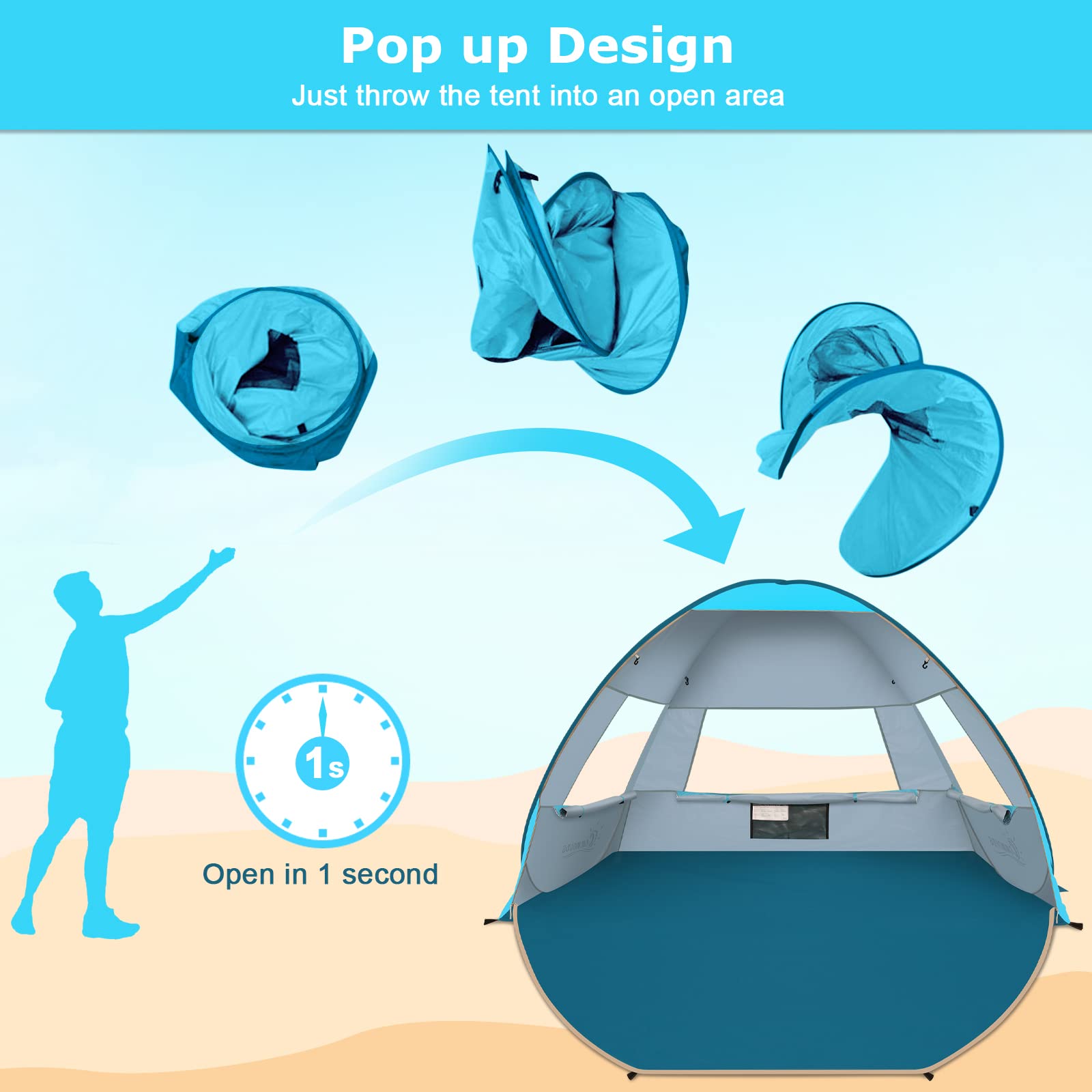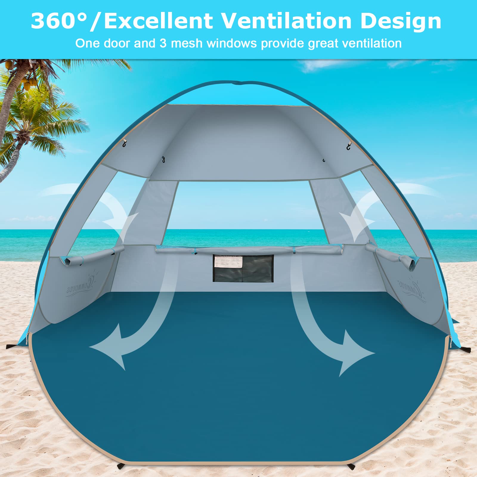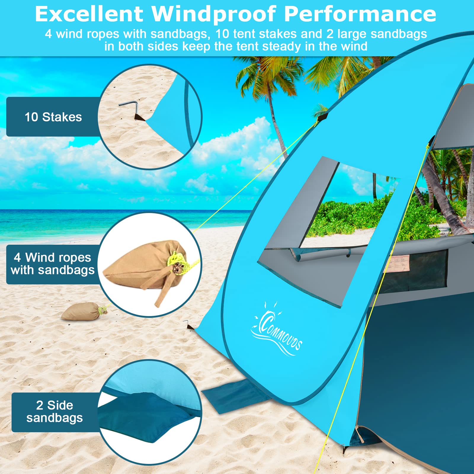 COMMOUDS tienda de playa UPF 50+ para 3-4 personas