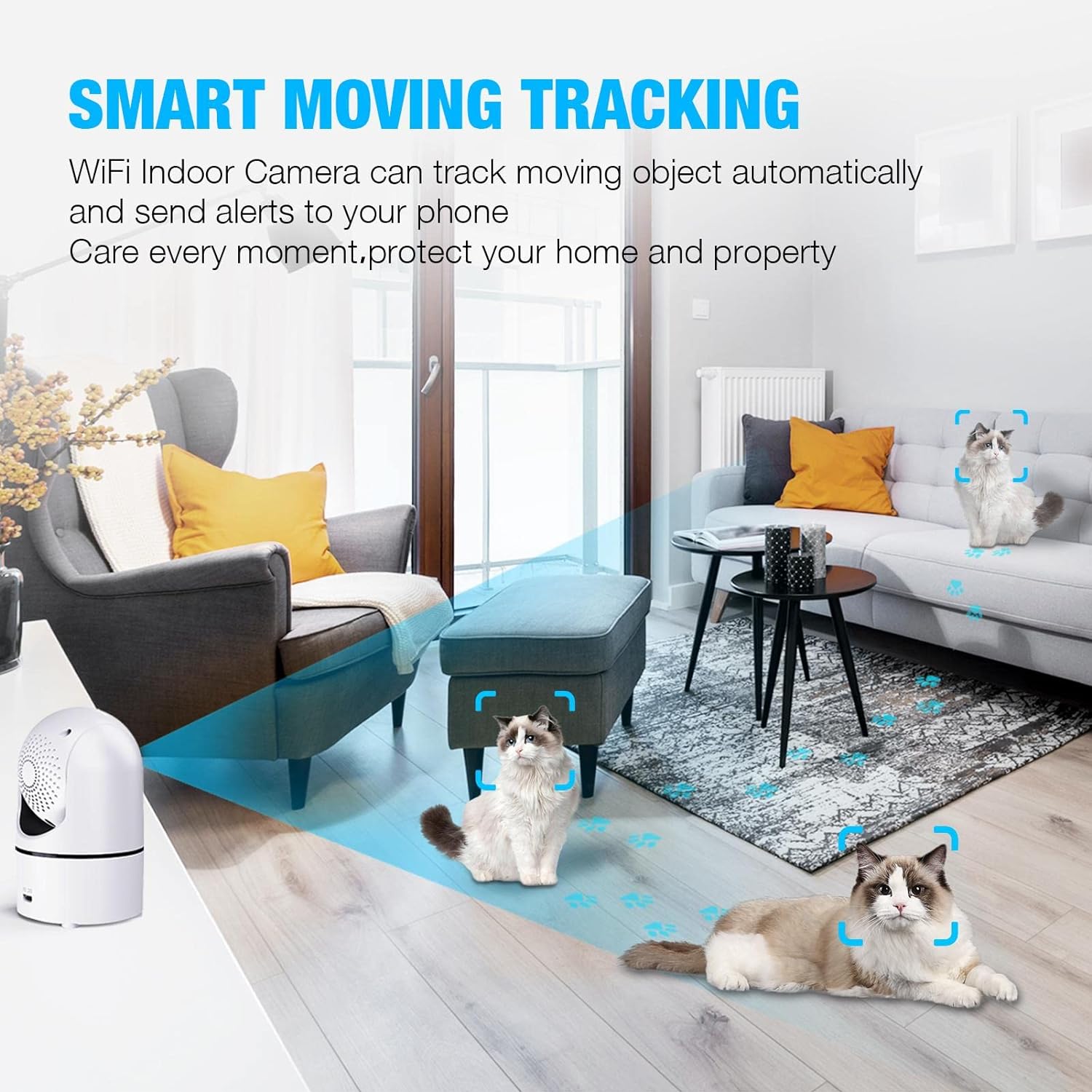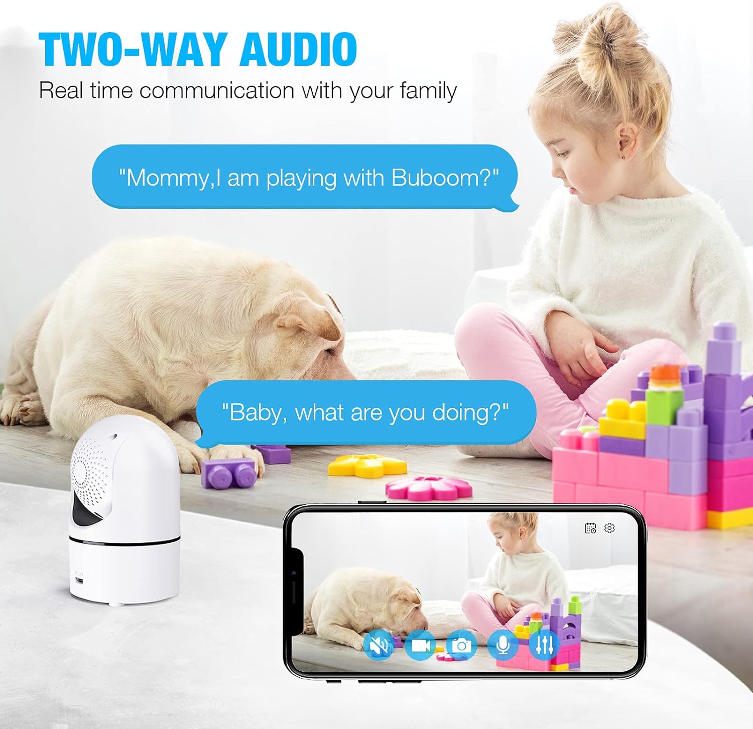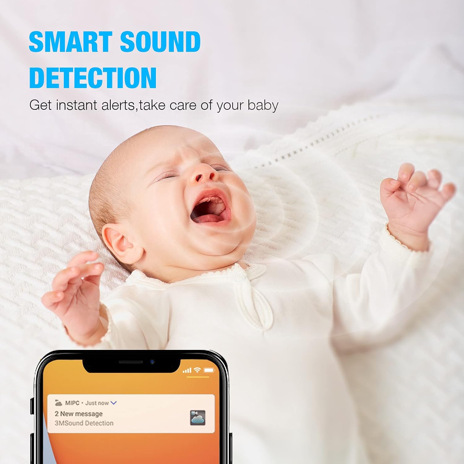 Detección de sonido y movimiento en tiempo real y tecnología de alerta instantánea: al brindar transmisión en vivo las 24 horas, los 7 días de la semana, podrá rastrear la condición de su bebé de forma remota y se enviarán alertas de sonido y movimiento en tiempo real a su teléfono móvil. Cuando se detecta movimiento, la cámara se mueve automáticamente y sigue el objeto en movimiento.