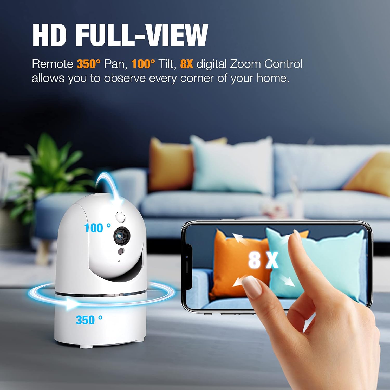 REMOTO COMPLETAMENTE: con un rango de rotación horizontal de 350° y vertical de 100°, lo que garantiza que siempre tendrá una visión clara de su bebé desde cualquier ángulo. La inclinación de la cámara del monitor para bebés y el zoom digital de 8x se pueden controlar completamente de forma remota para lograr un amplio campo de visión y zoom de video para ver los detalles con claridad, lo que le permite verificar la habitación de su bebé en su teléfono de forma remota mientras trabaja.