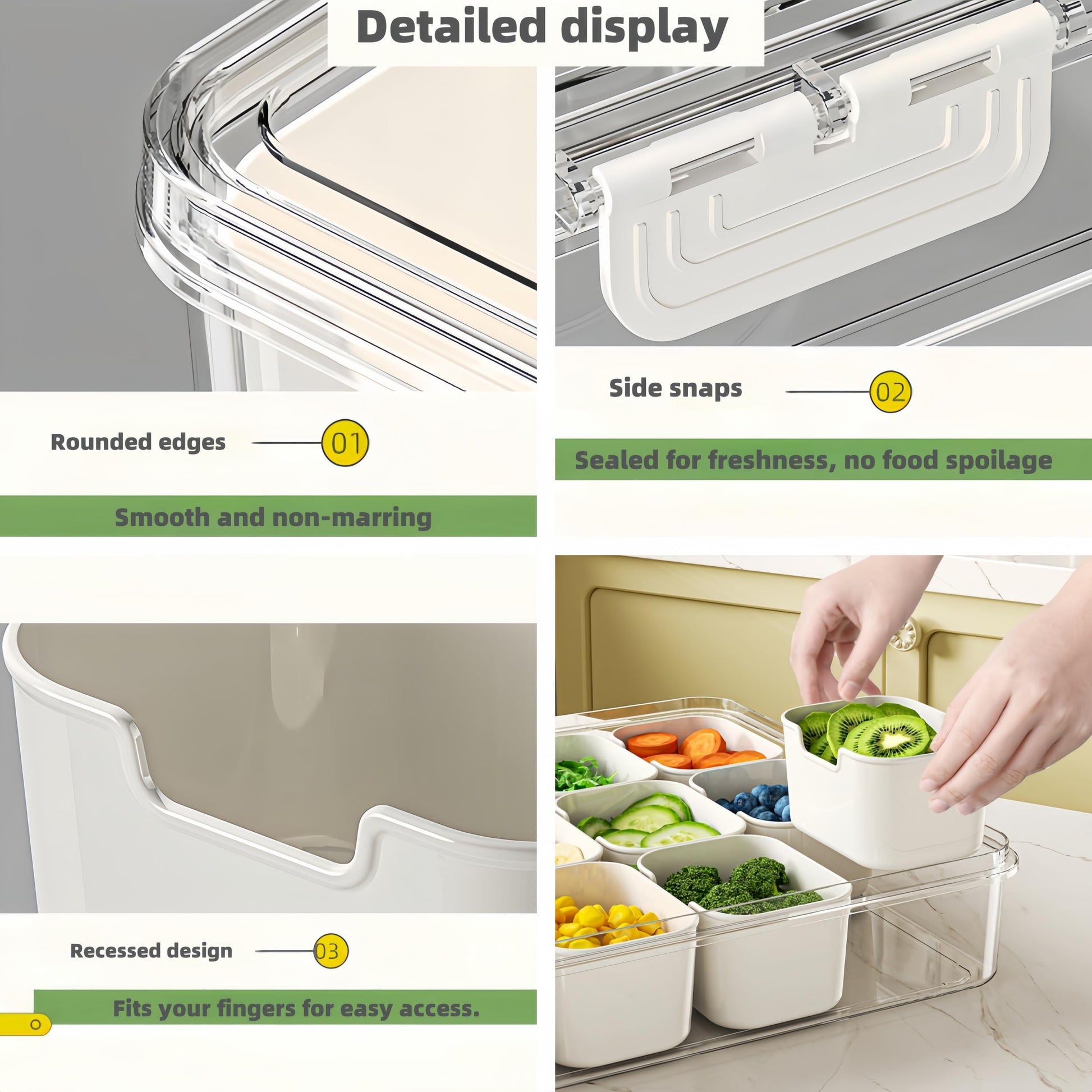 Contenedor para aperitivos, 12 compartimentos con tapa y asa dividida