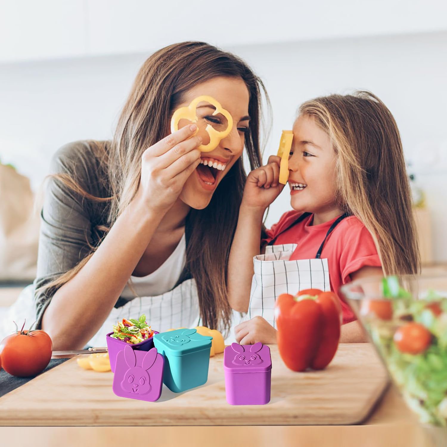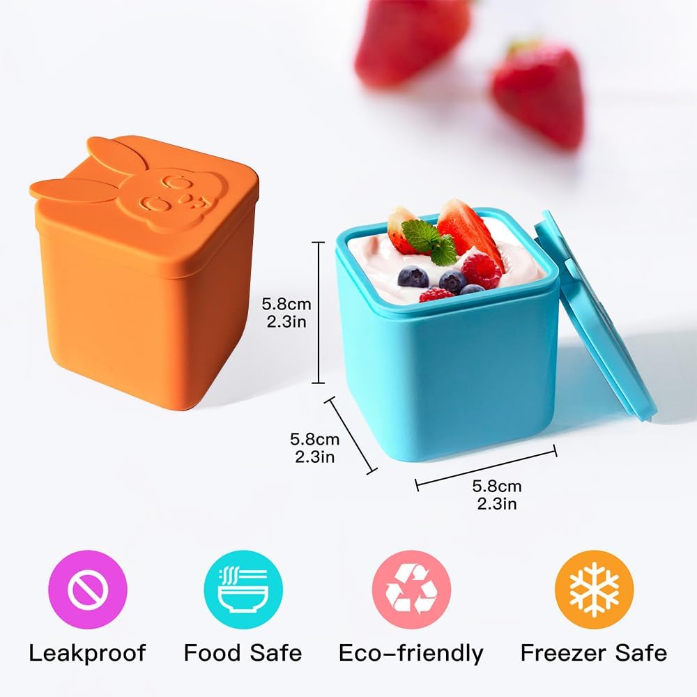Diseño a prueba de fugas que no ensucia: a diferencia de los forros de silicona para cupcakes, nuestros recipientes para condimentos con tapas son altos y resistentes, lo que los hace perfectos para llevar aperitivos sobre la marcha. Su bonita tapa de conejo se ajusta de forma segura, por lo que no tienes que preocuparte por que tu lonchera se derrame.