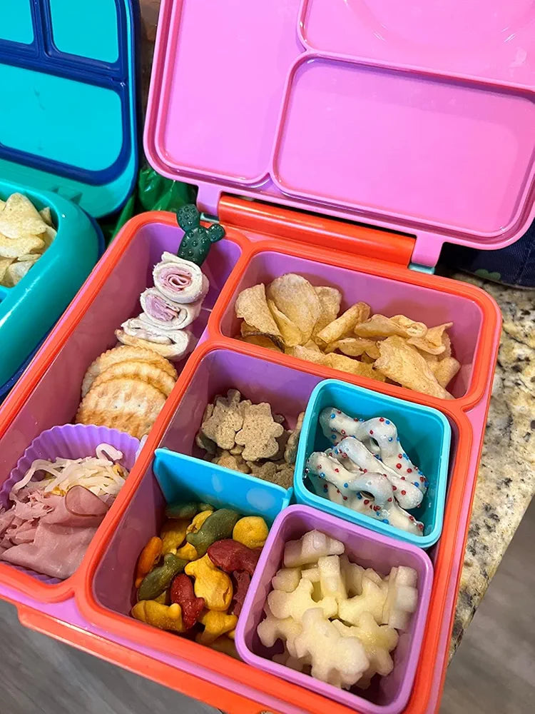 Un regalo bonito y práctico para la mayoría de las cajas de bento: cada juego viene con dos recipientes de inmersión. Cada uno mide 2.3 x 2.3 x 2.3 pulgadas. Es compatible con Bento Box. El rosa y el naranja añaden colores brillantes a tu lonchera. A los niños les encantará.