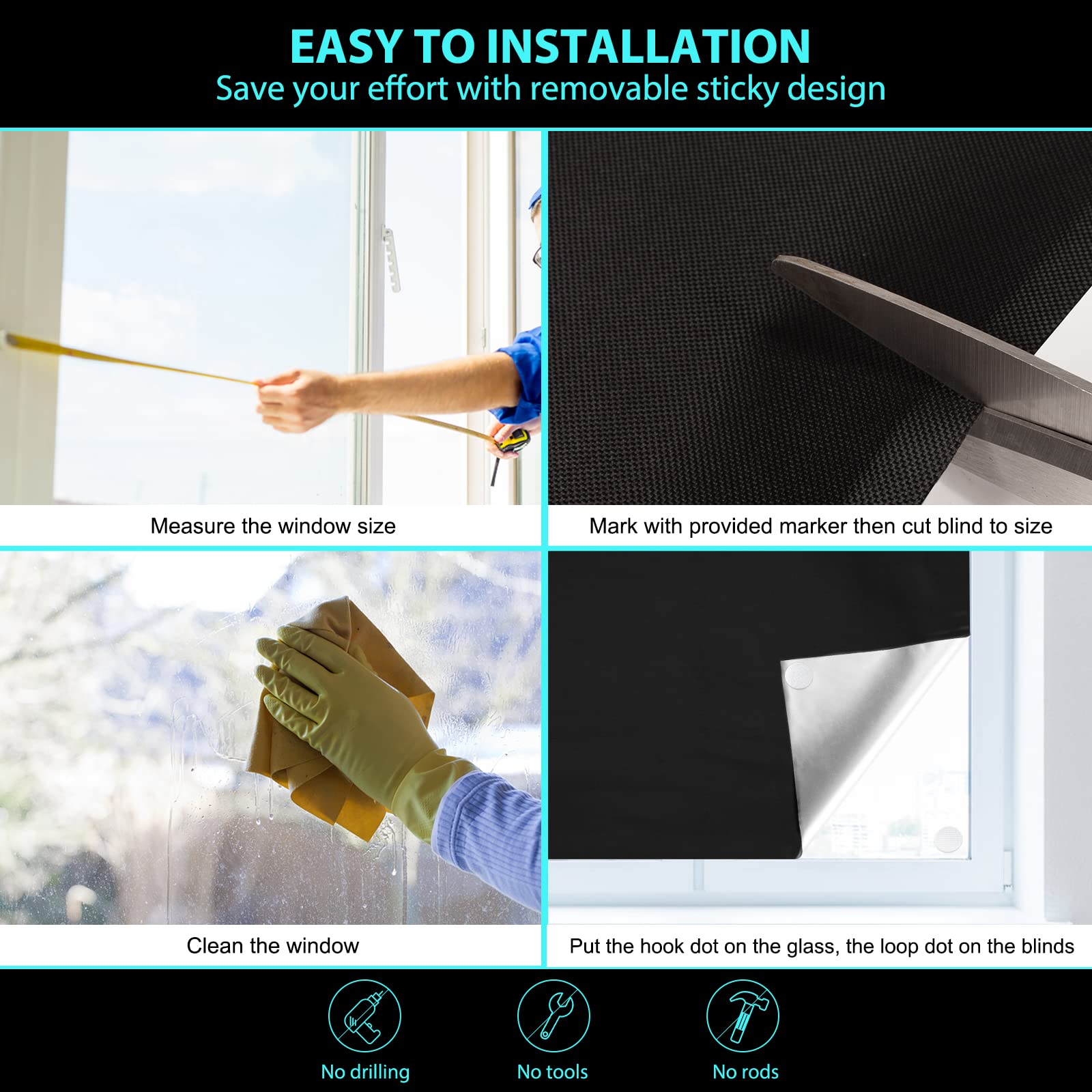 Cortinas opacas, cortina de ventana portátil 100% opaca