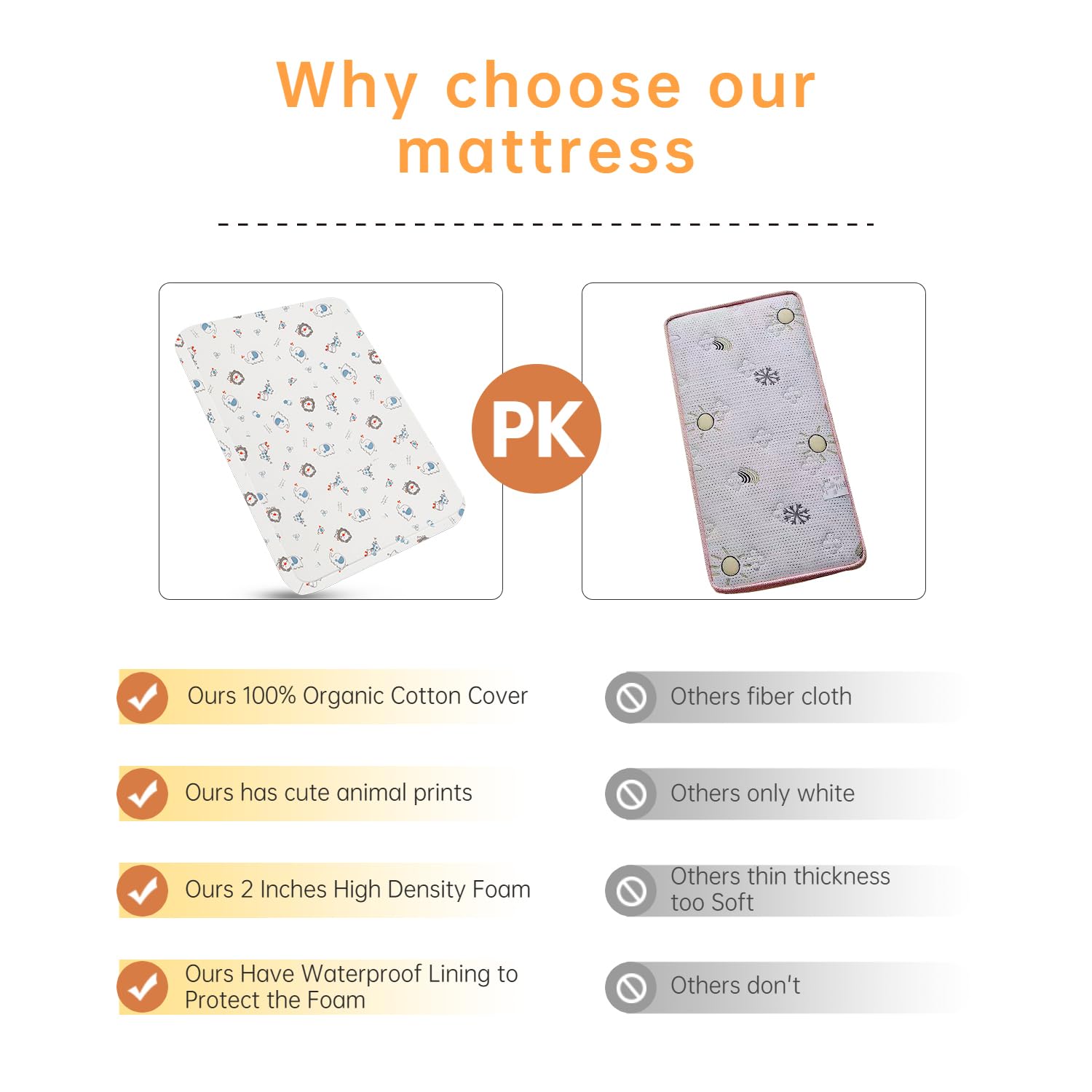 Colchón de espuma viscoelástica para pack n play, 38 "x 26" x 2 pulgadas