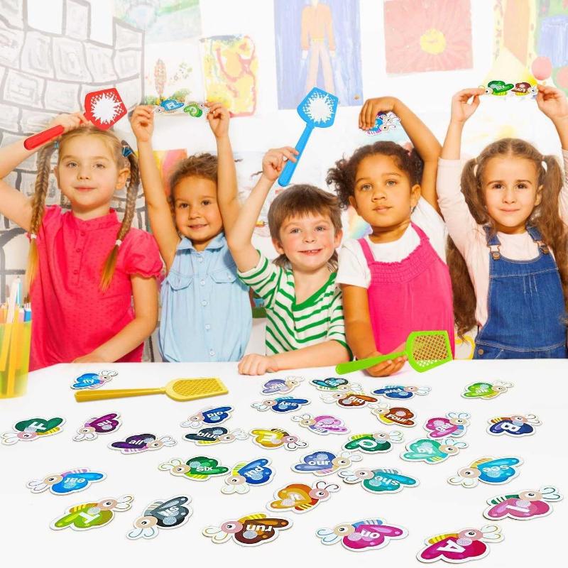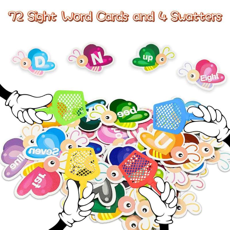 *Caja con detalles* Juegos de palabras a la vista: a través de competiciones lúdicas con 2 a 4 jugadores, los niños pueden dominar la ortografía, la lectura y las habilidades de vocabulario mientras juegan, y pueden aumentar las interacciones entre padres e hijos. Perfecto para la educación en el hogar y las actividades de aprendizaje del jardín de infantes. Material seguro: las tarjetas flash de palabras visuales están hechas de material de tablero duro + plástico ABS, la madre puede estar segura. Los matamoscas con gran flexibilidad no se romperán ni deformarán fácilmente después de doblarse. Los niños pueden usarlo repetidamente durante mucho tiempo. Diseño de velcro: los juguetes de palabras visuales utilizan un diseño de velcro, que es fácil de pegar y quitar, fuerte pegajosidad, no se cae fácilmente. Incluso mientras están más enfocados en la diversión, también mantienen frescas esas palabras en su mente. Paquete de juegos de palabras a la vista: incluye 36 tarjetas de palabras a la vista de doble cara, que es un diseño de tamaño científico, más adecuado para las manos pequeñas de los niños. Y 4 matamoscas coloridos (rojo/amarillo/azul/verde), 1 tarjeta de vocabulario, 6 velcros y 1 manual de uso. Asegúrese de que los niños disfruten de un momento feliz. La mejor opción de regalo: Exquisito empaque de caja de color, operación simple y juego muy divertido. Las palabras de vista son un buen juego para entrenar la inteligencia, a los niños también les encanta jugar.