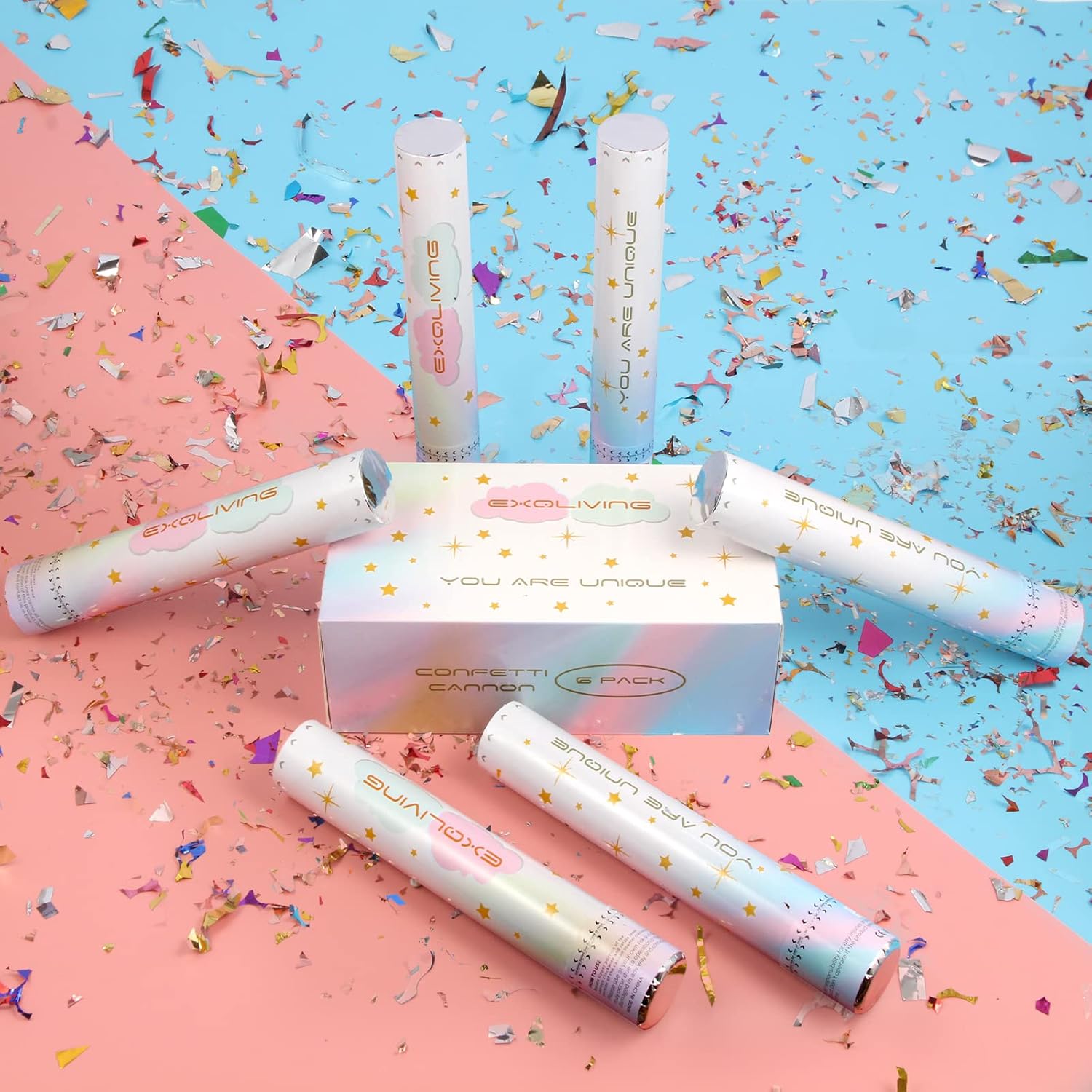 EXQLIVING-Cañones de confeti para fiestas, 6 uds de 12 pulgadas