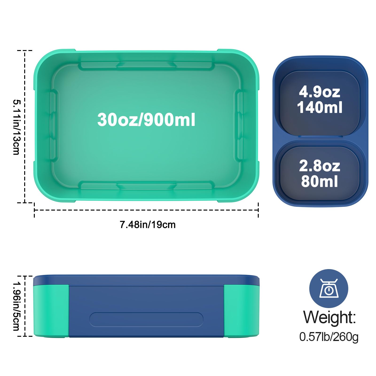 FANCILLA Caja Bento para niños, paquete de 2 recipientes a prueba de fugas con compartimento extraíble