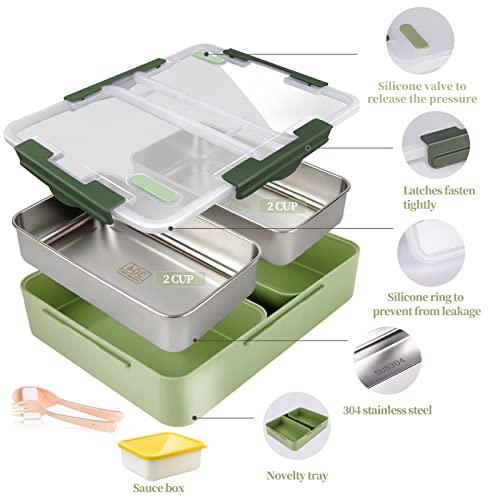 Fiambrera de acero inoxidable (grande), contenedores de almuerzo-verde