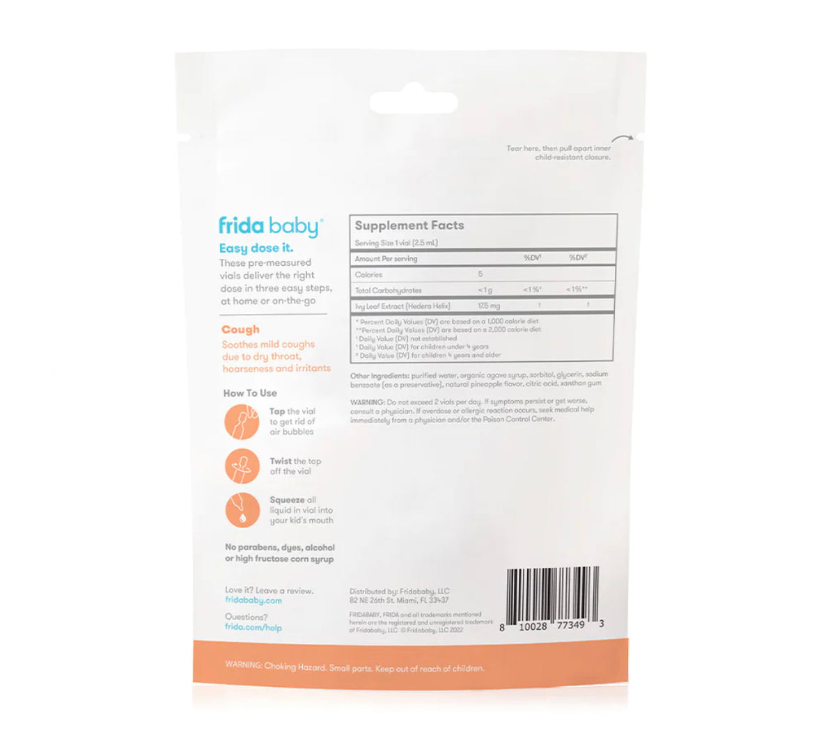 On-The-Go Drops for Cough elimina el desorden y las conjeturas al medir los medicamentos para su bebé enfermo. Ya sea que esté en casa o de viaje, estos viales higiénicos llenados individualmente aseguran que esté preparado para los miedos de los días de enfermedad. Obtenga alivio de la tos en 3 sencillos pasos: toque el vial, gire la parte superior y apriete en la boca del bebé. Incluye 15 viales de dosis única con suplemento de extracto de hoja de hiedra con sabor a piña (0.08 fl oz cada uno). Alivia naturalmente la tos leve debido a la sequedad de garganta, la ronquera y los irritantes.