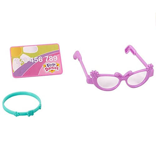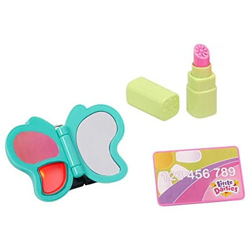 Set incluye: bolso, lentes, pintura de labios, mariposa con maquillaje y espejo, pulsera y tarjeta de crédito de juguete. *Sin su empaque original