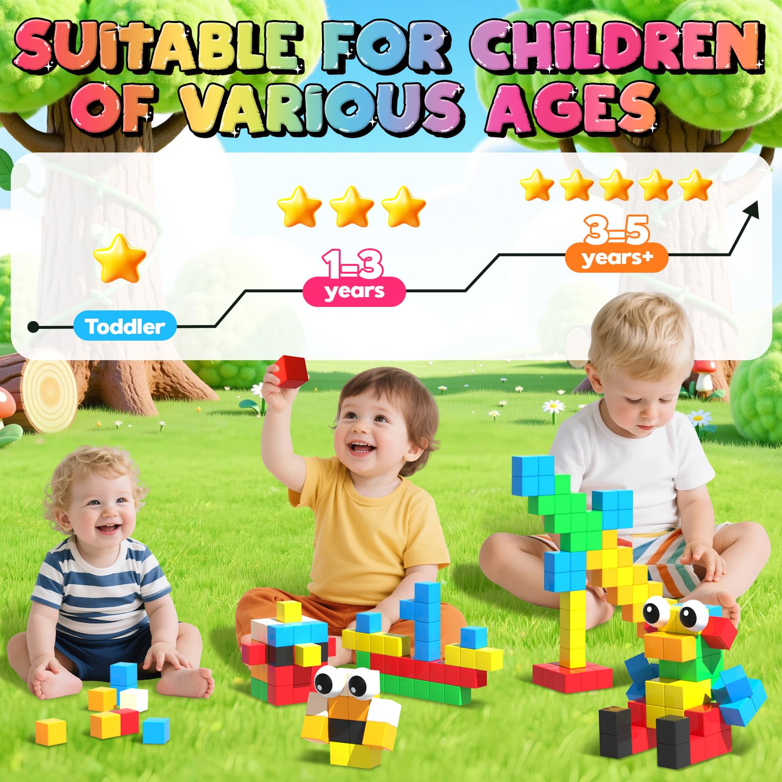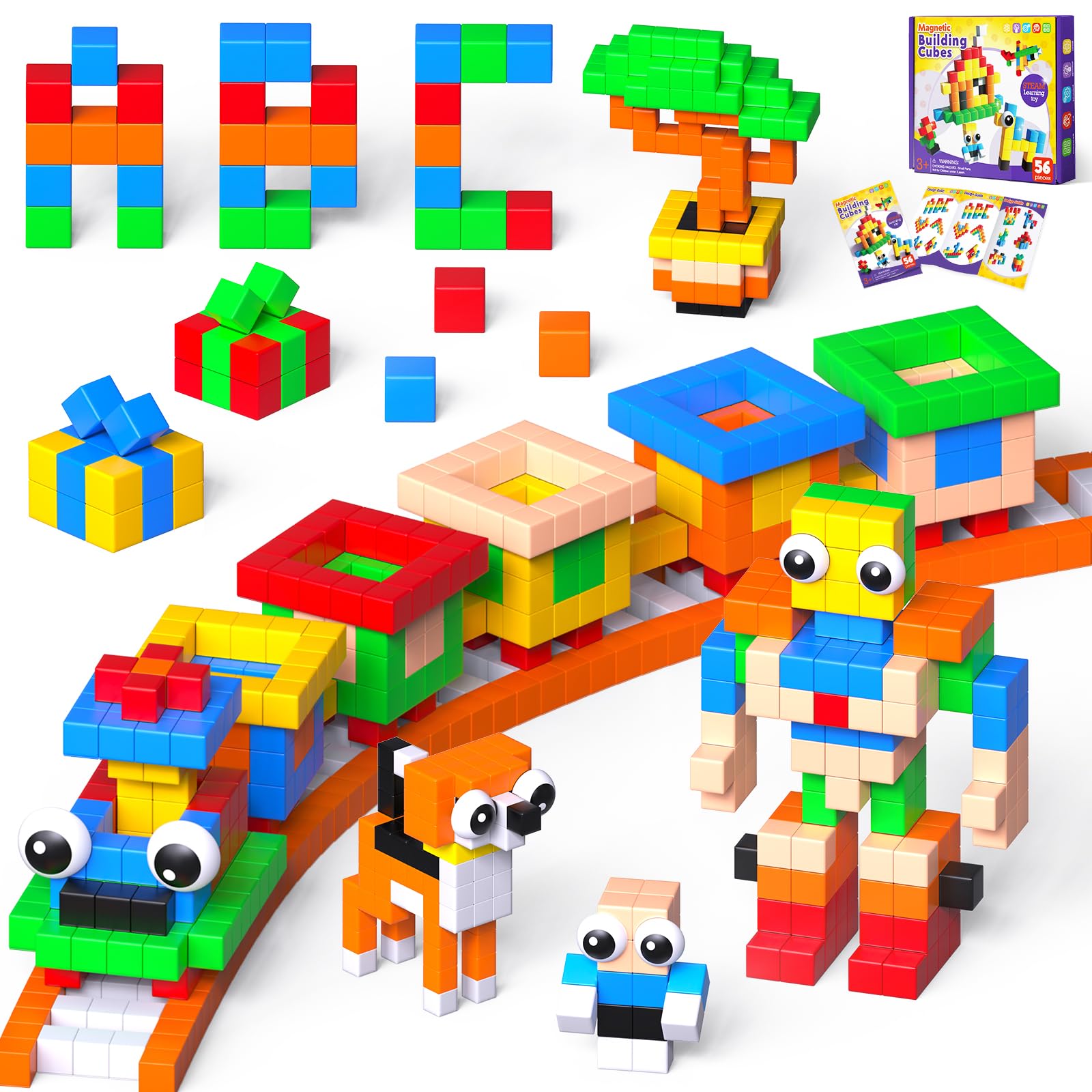 Goody King Bloques de construcción magnéticos grandes con ojos de juguete, 56 piezas