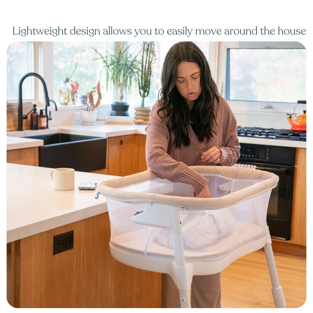 HALO® BassiNest® Lite – Moisés transpirable para bebé que se desliza sobre la cama con paredes de malla para flujo de aire y visibilidad