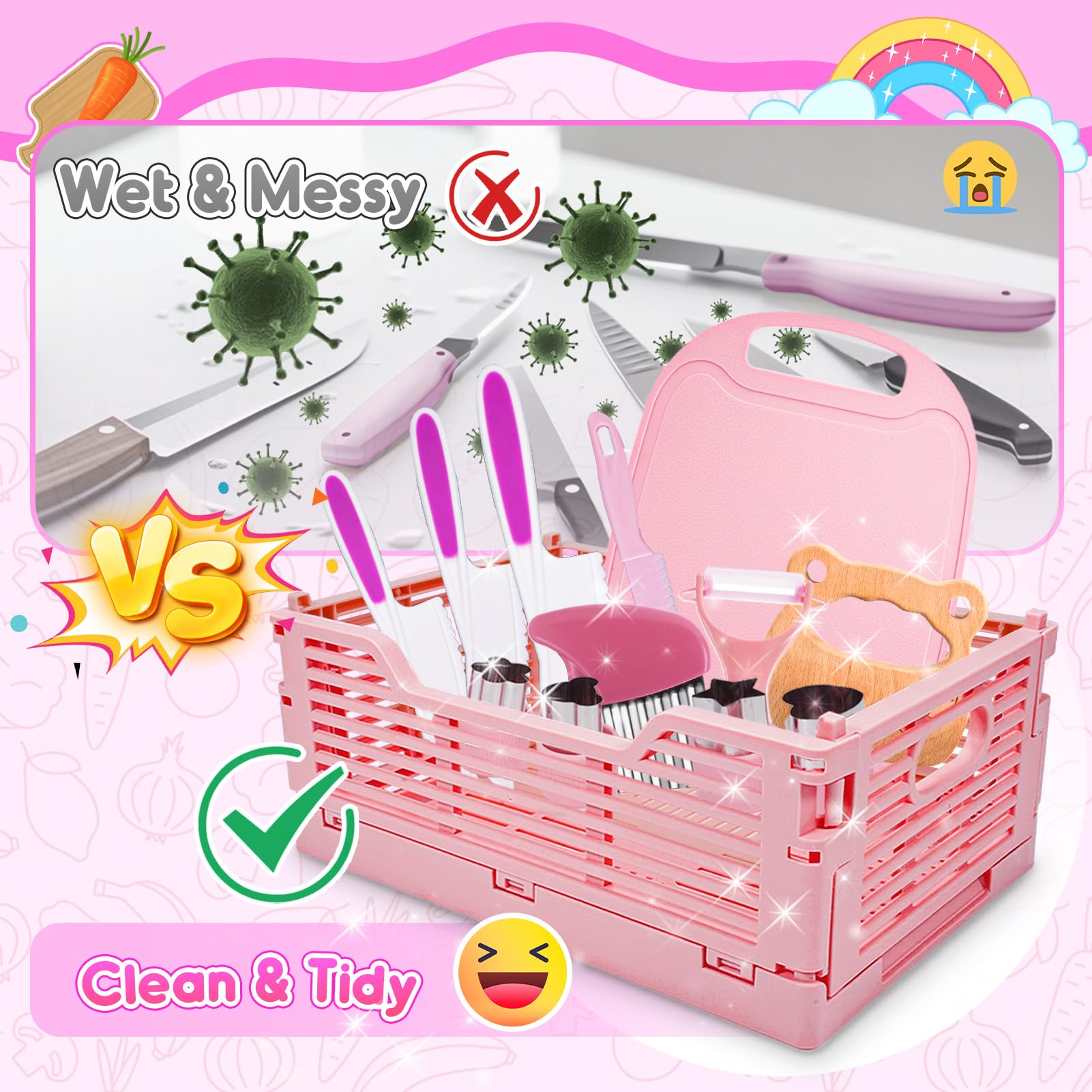 Juego de cuchillos de cocina para niños para cocina real y cesta, juguetes Montessori