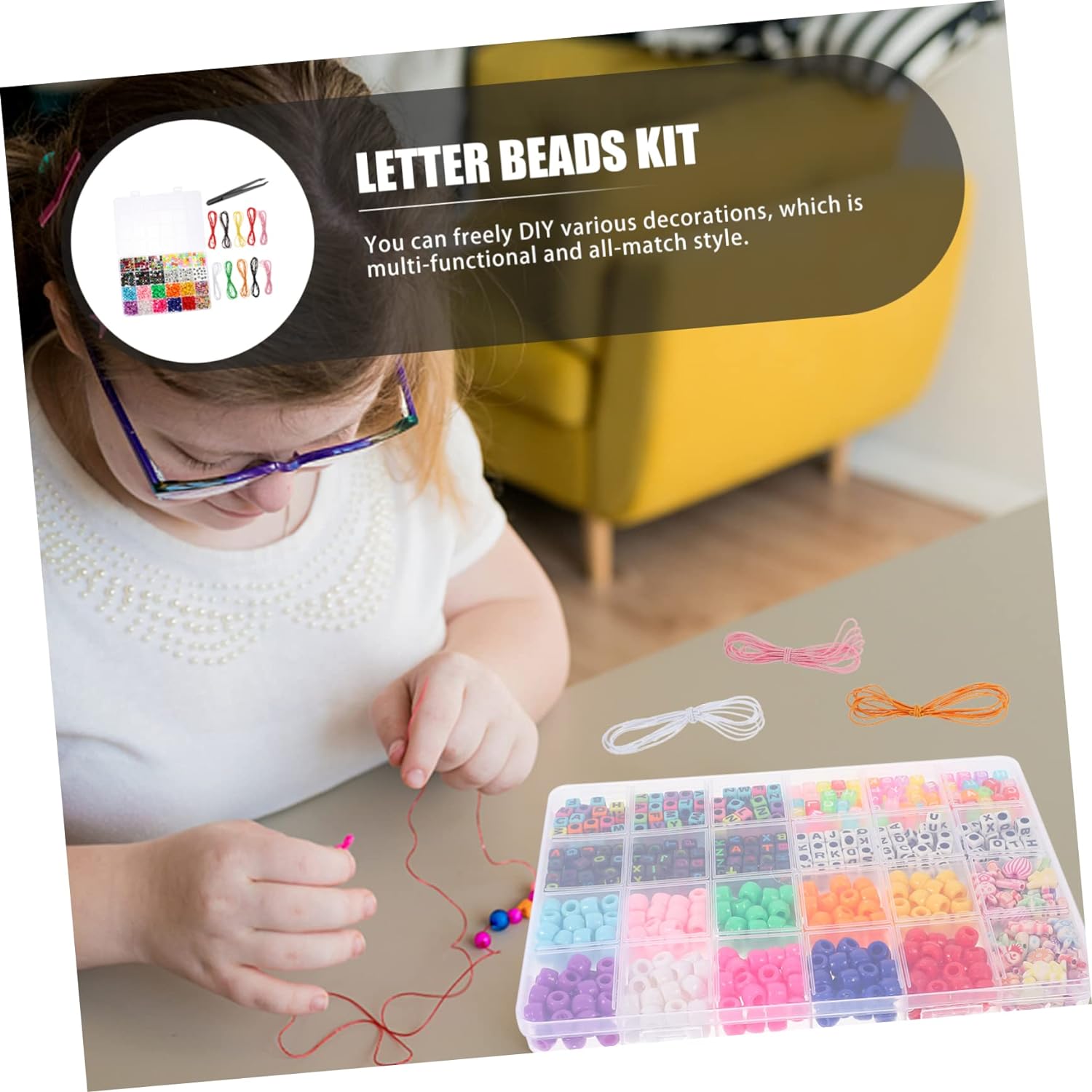 Cuentas de pulsera de arroz: cuentas de letras de diferentes colores, abalorios y cuerdas elásticas para hacer pulseras y joyas.