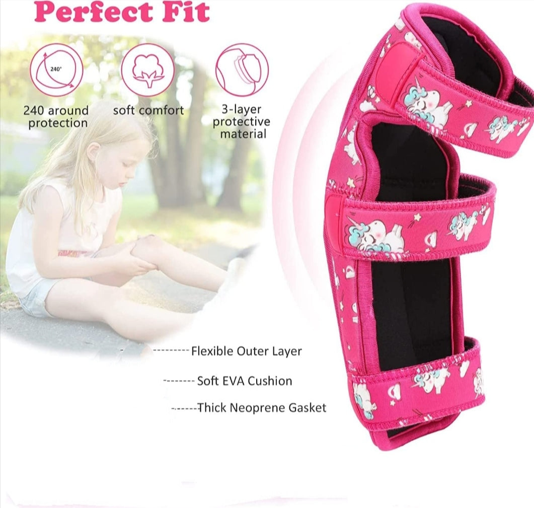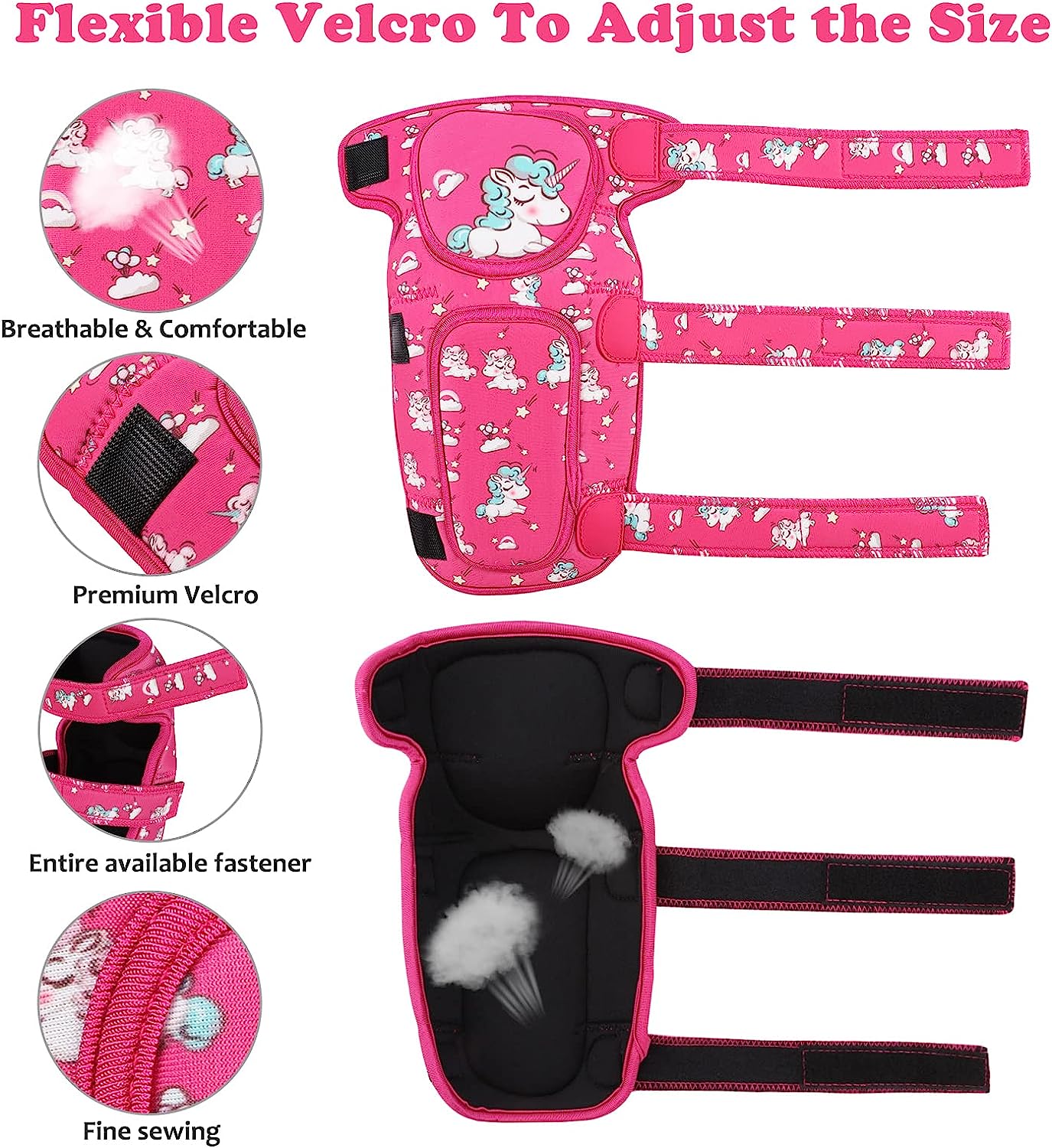 Juego de rodilleras de protección para niños, diseño unicornios, 4-8 años