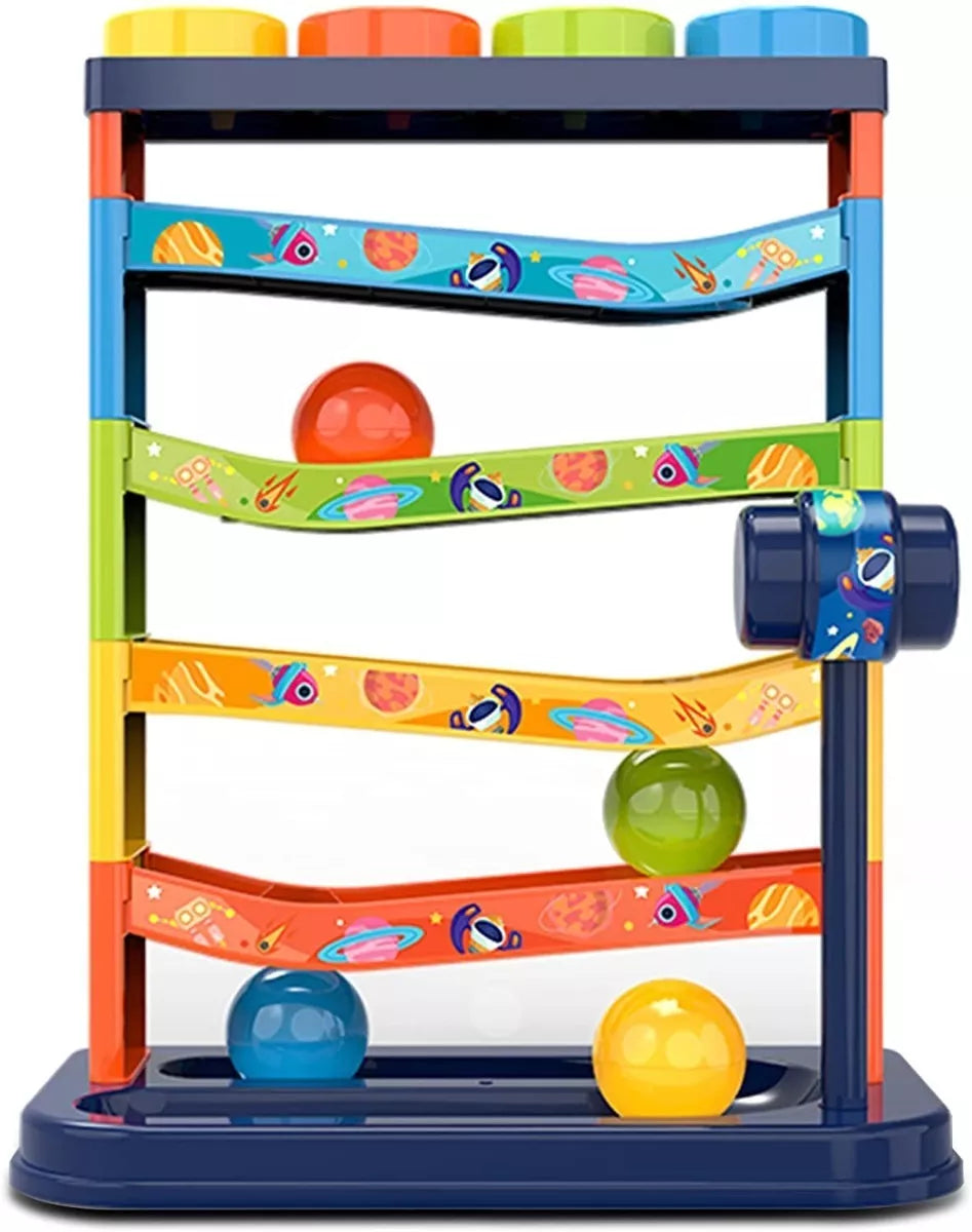 Característica: Golpee la pelota de juguete con un martillo y la pelota rodará por la pista, lo cual es muy divertido.
