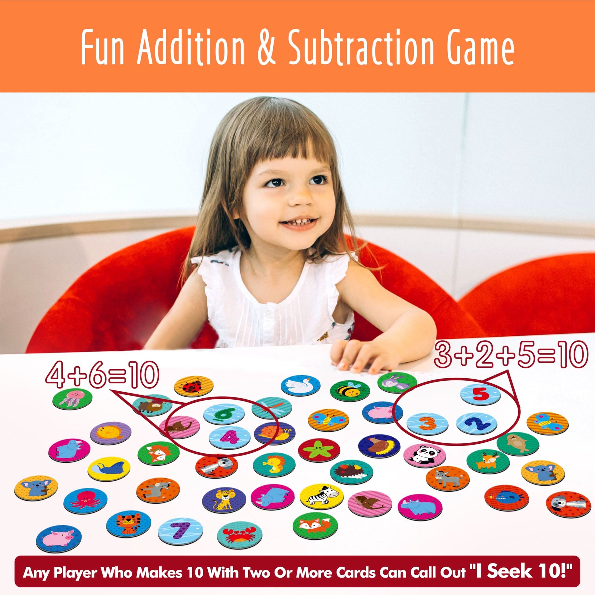- Divertido y fácil de jugar: los niños compiten para encontrar combinaciones de cartas que suman hasta diez. ¡El jugador con más 10 será el ganador! Y la diversión no termina ahí, ¡inventa tus propios juegos! ¡Intenta hacer veinte, encontrar números específicos o cualquier desafío que puedas soñar!