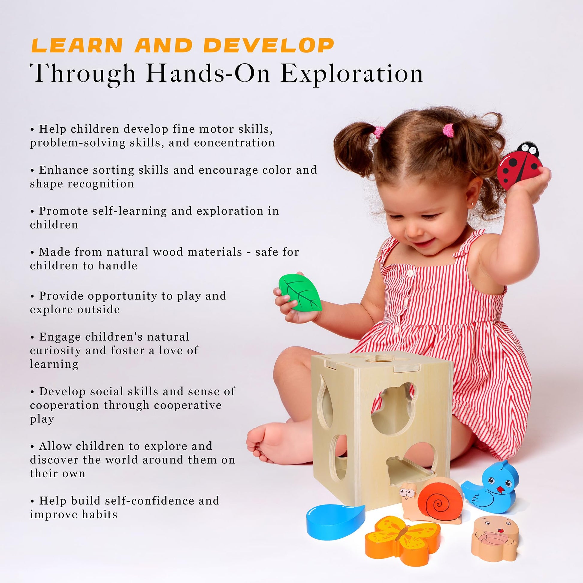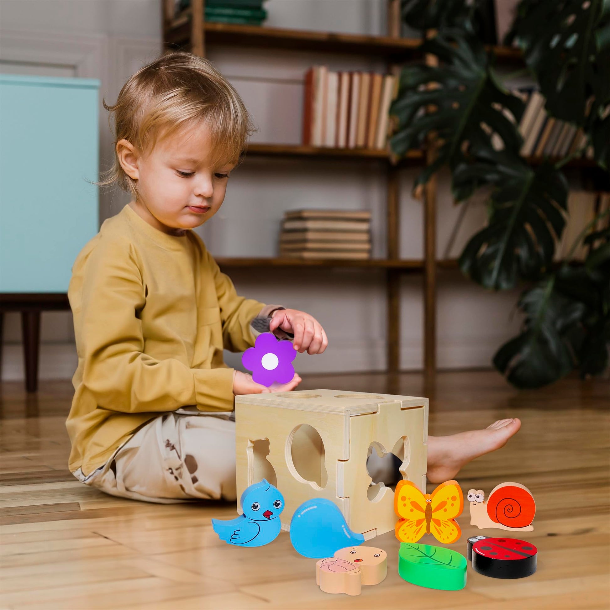 Juguete clasificador de formas de madera con 8 formas