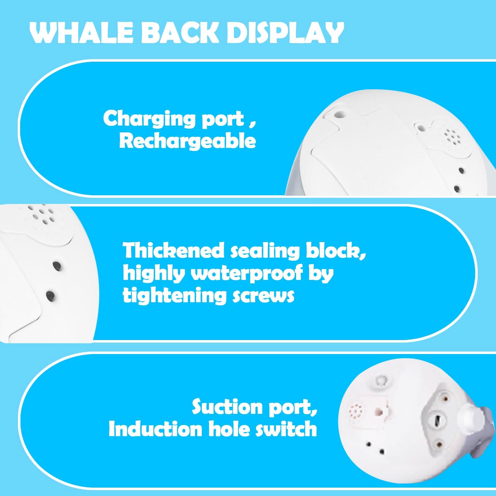 - El diseño único de la pequeña ballena sumerge a los niños en el mundo de los animales pequeños, proporcionando una amplia compañía y una sensación de seguridad. El diseño de iluminación fresca atrae la atención de los niños y ejerce su concentración. La función de fuente de ducha puede calmar las emociones de los niños y mejorar su experiencia sensorial.