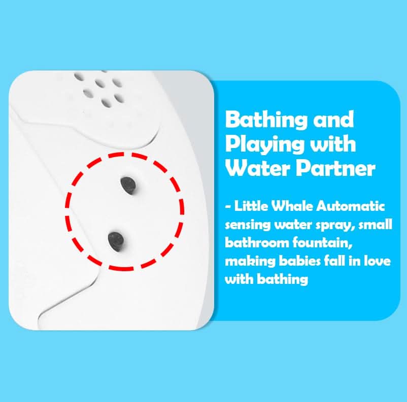 - Cuando el niño esté tomando un baño, encienda el interruptor de la ballena pequeña y colóquela en el agua. Cuando detecta el agua, encenderá automáticamente la fuente y cambiará el modo de color, y también puede girar automáticamente, proporcionando al niño la diversión de jugar.