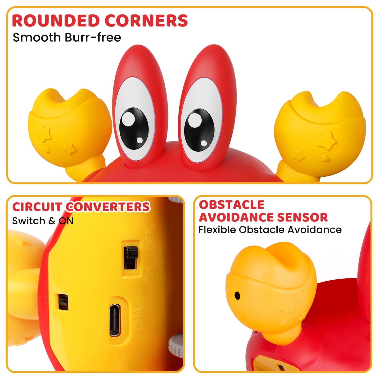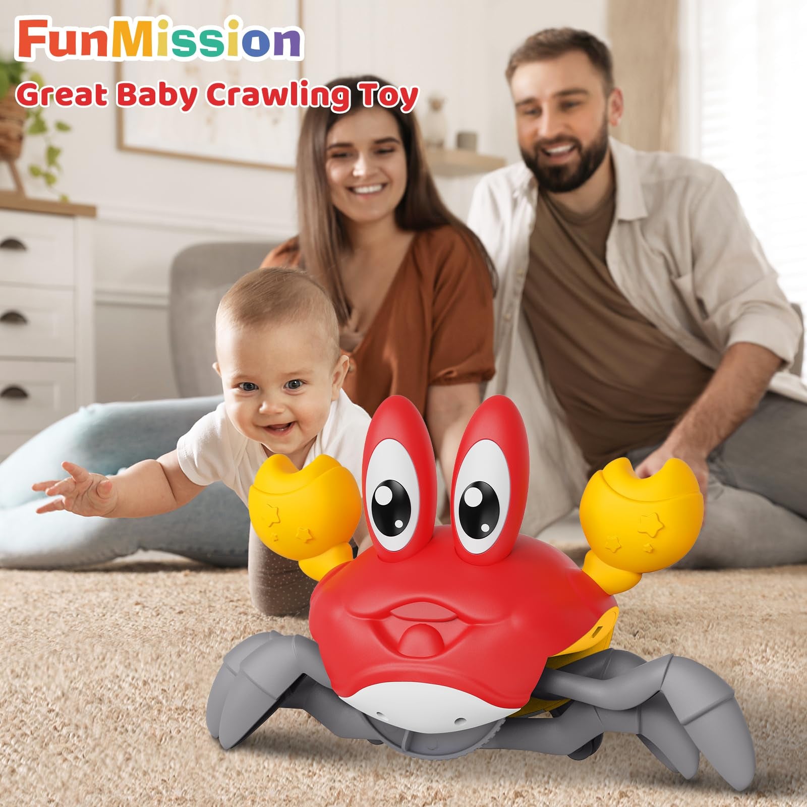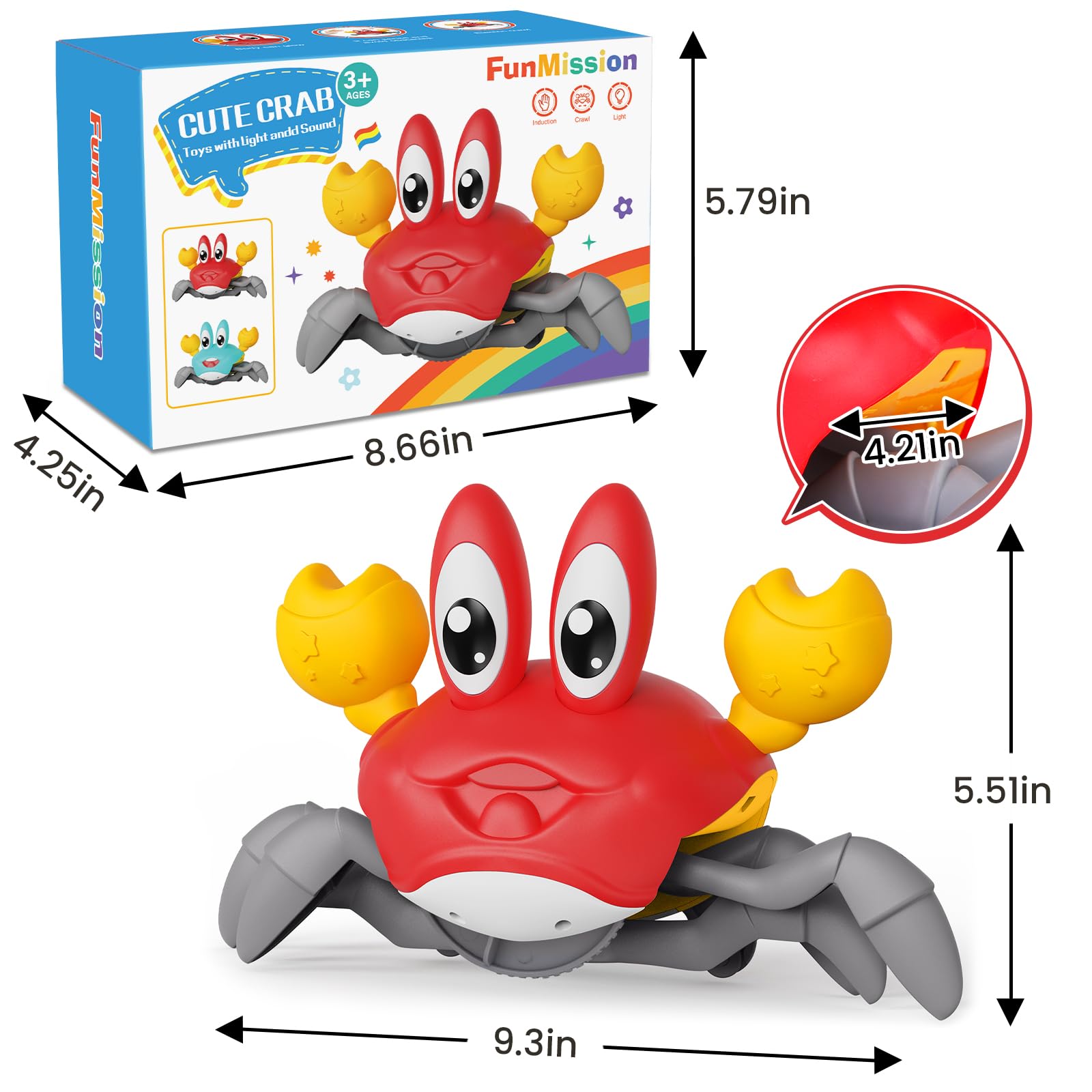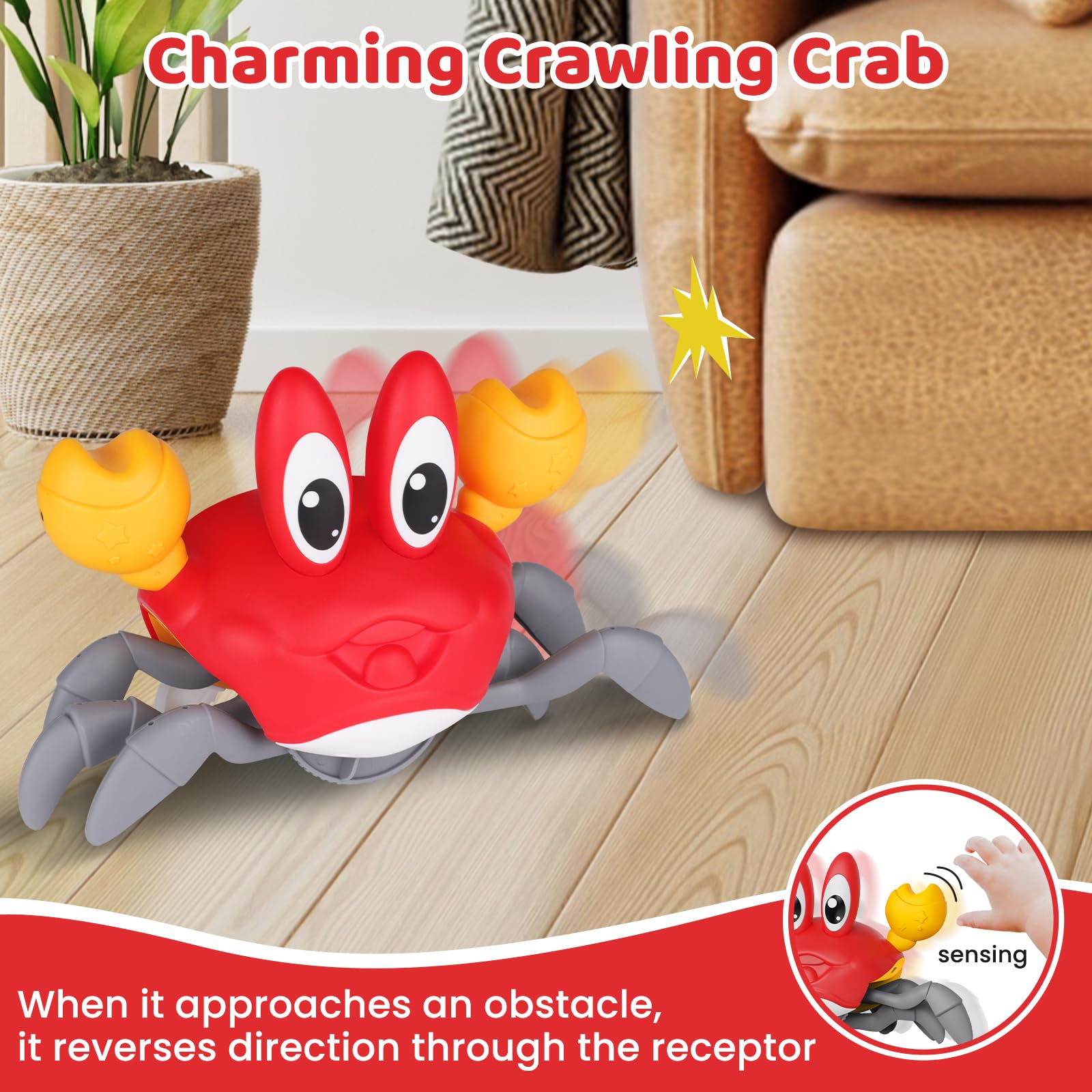Juguete para bebé de cangrejo gateante, juguetes para bebés de 3 a 6 años con música y luz LED