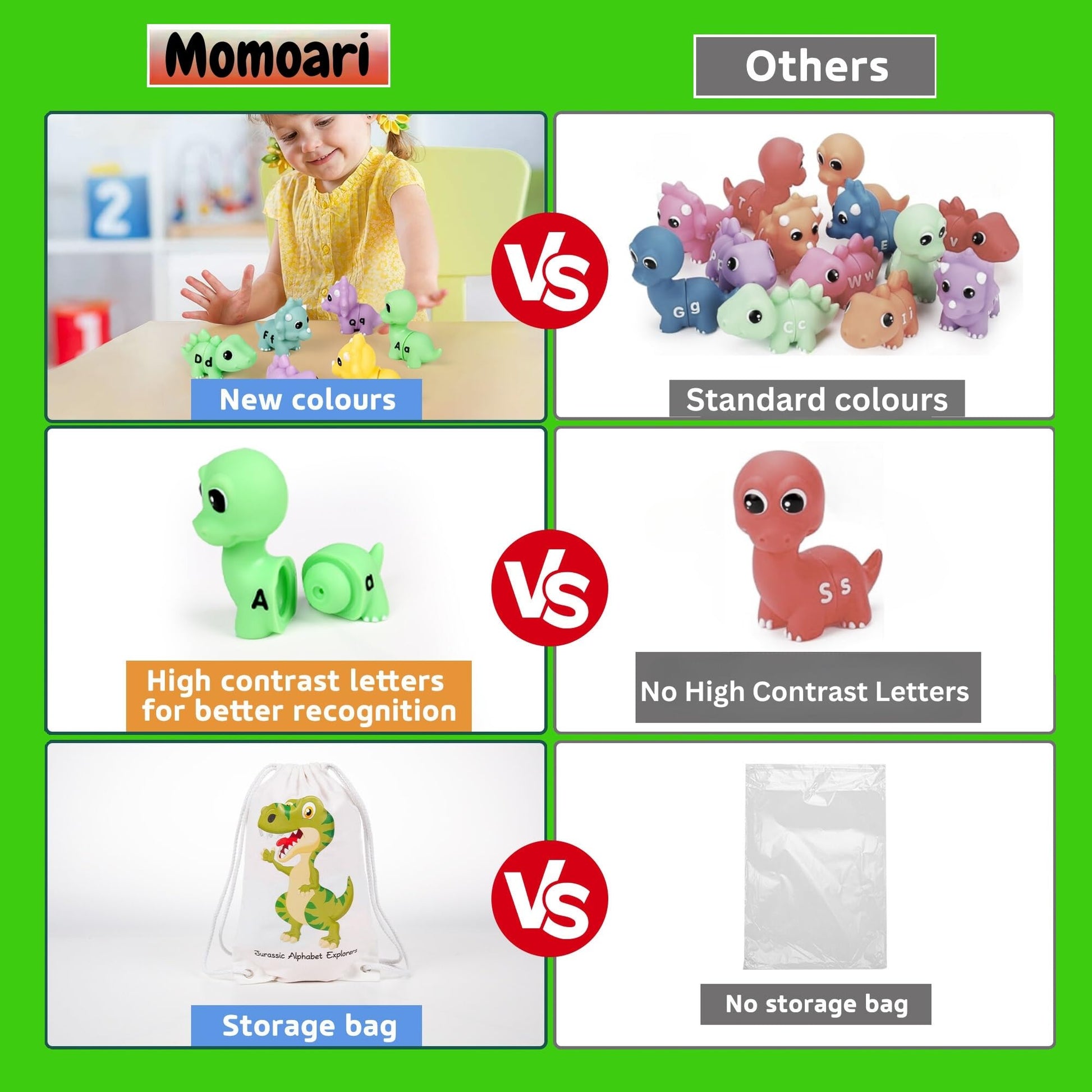 Juguetes de aprendizaje del alfabeto de dinosaurio con mayúsculas y minúsculas - 13 dinosaurios - 26 letras