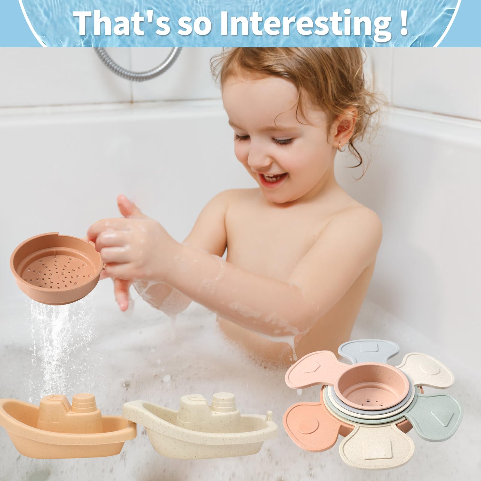 Juguetes de baño Barcos flotantes Tren con cuchara de baño, 11 piezas