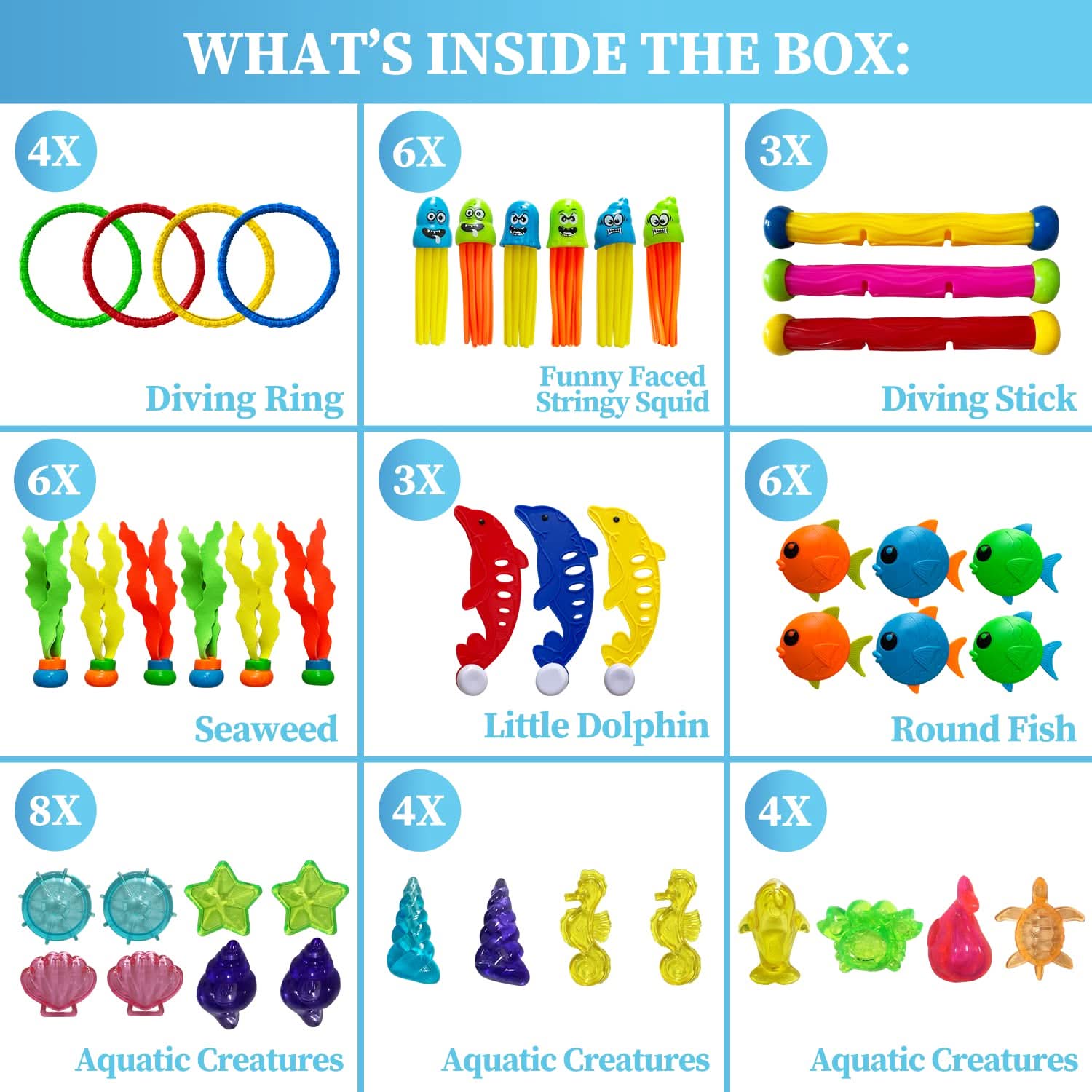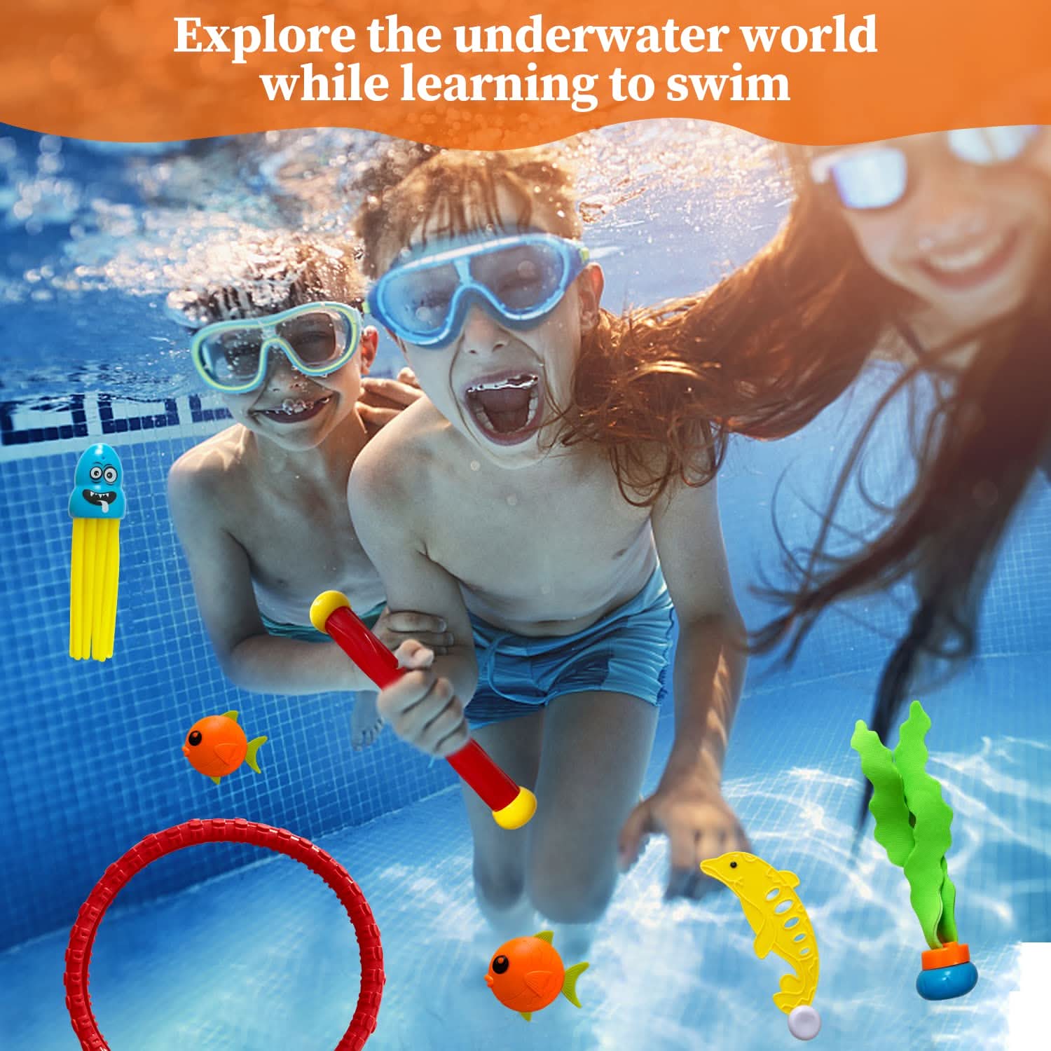 Juguetes de buceo para niños, 44 piezas para nadar bajo el agua