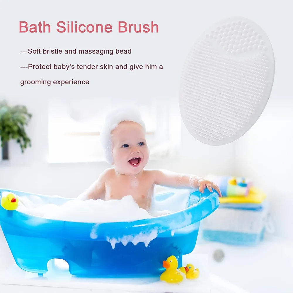 Cepillo de silicona para baño: Este cepillo de silicona con perlas masajeadoras facilita la limpieza del cabello del bebé y el masaje del cuero cabelludo. Su mango se adapta perfectamente a la mano de los padres, lo que proporciona una experiencia de aseo segura y cómoda para el recién nacido.
