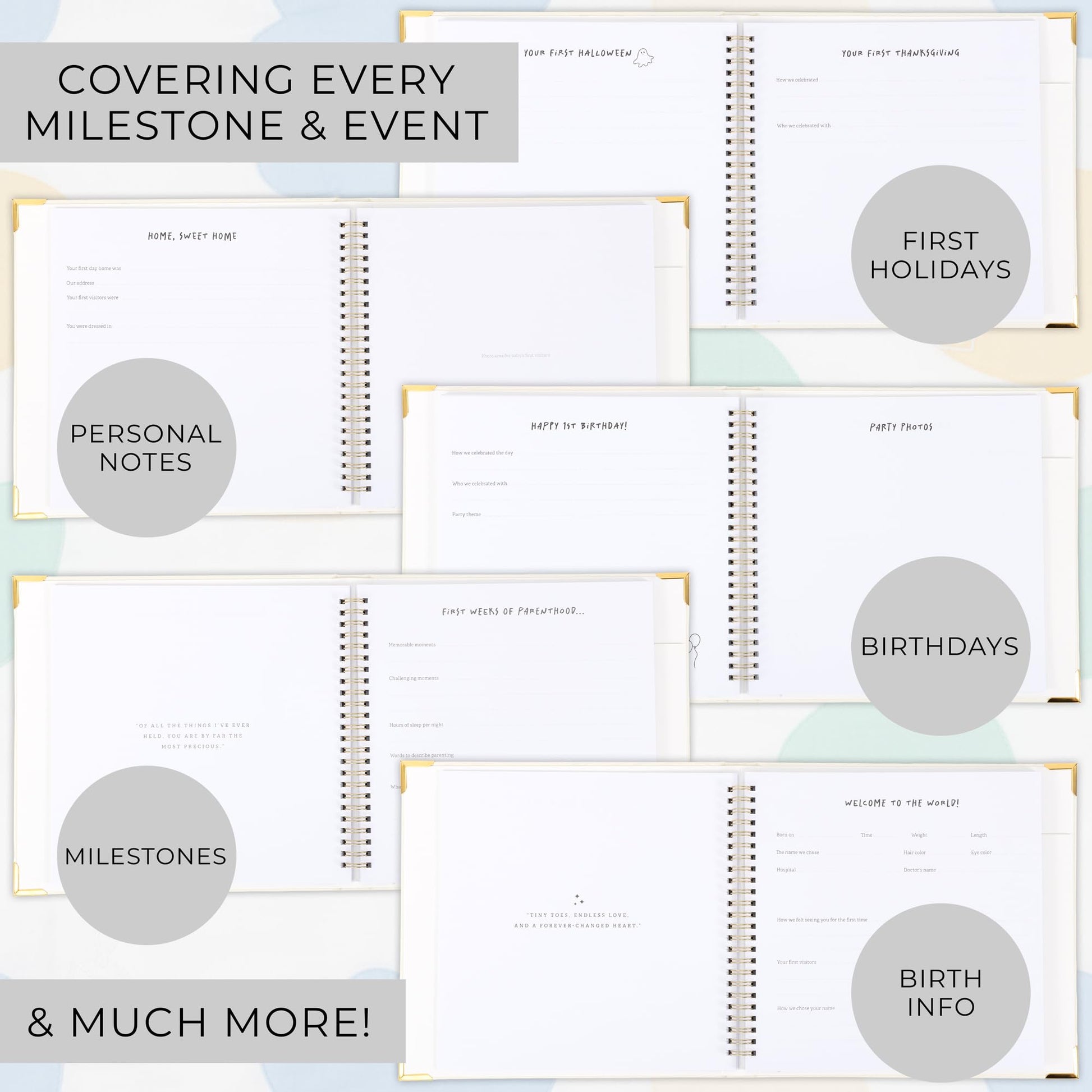- Deja notas personales dulces: Para hacer que este libro de hitos para bebés sea aún más personal, tienes mucho espacio para agregar letras y notas, palabras preciadas que tocarán el corazón de tu hijo en el futuro.