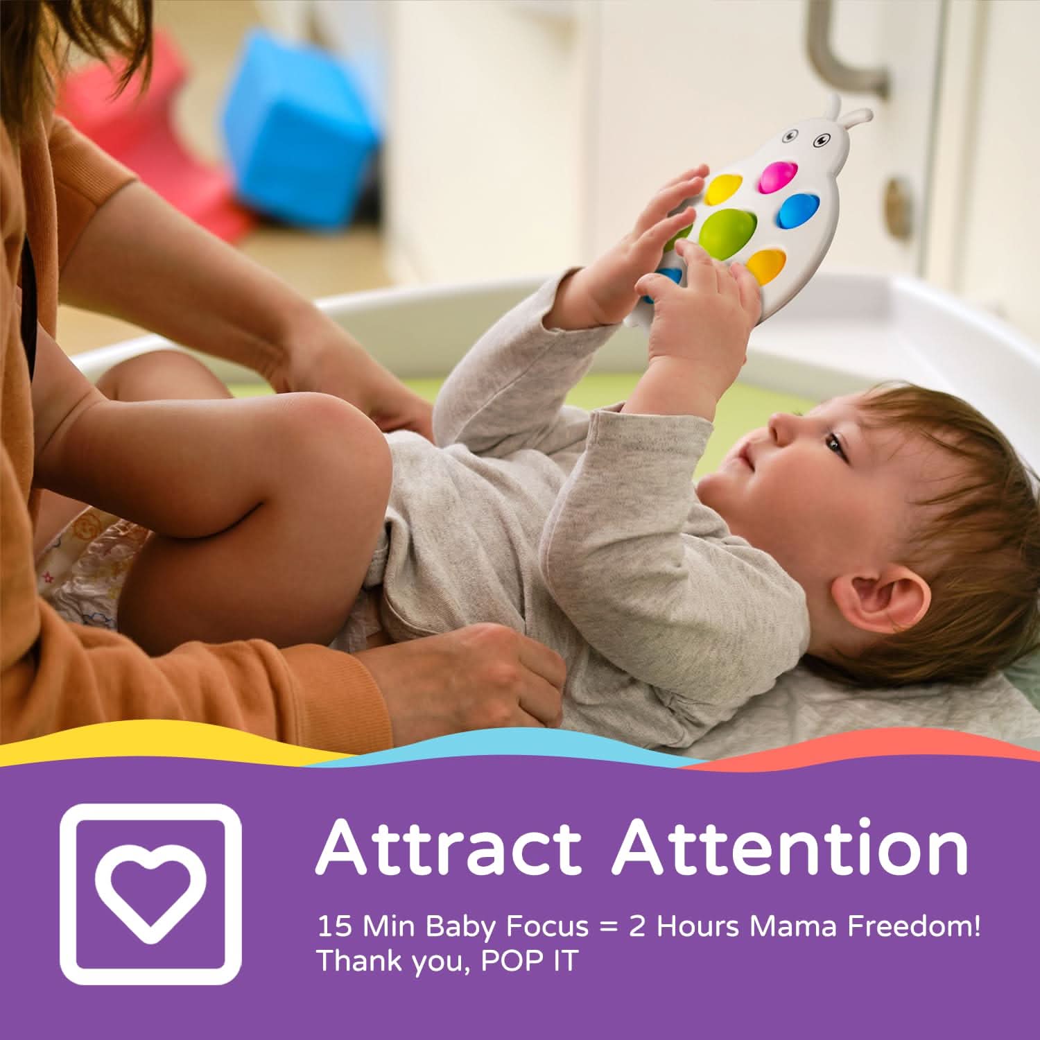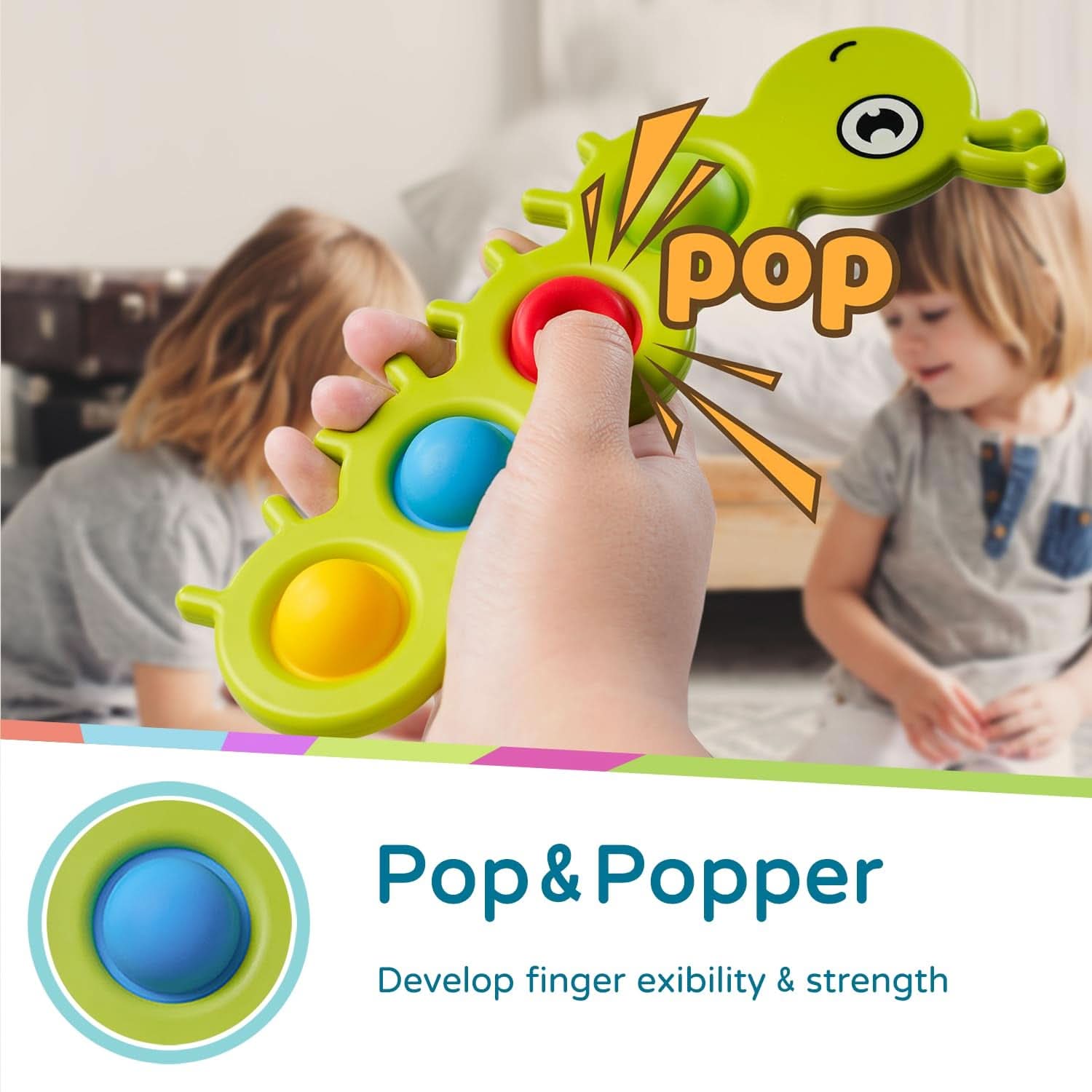 - Involucra el sentido cerebral: Empuje y rebote, "Pop, Pop, Pop" suena muy divertido para los bebés, fomentando las habilidades motoras finas, estimulación táctil, exploración sensorial, aprendizaje de causa y efecto.