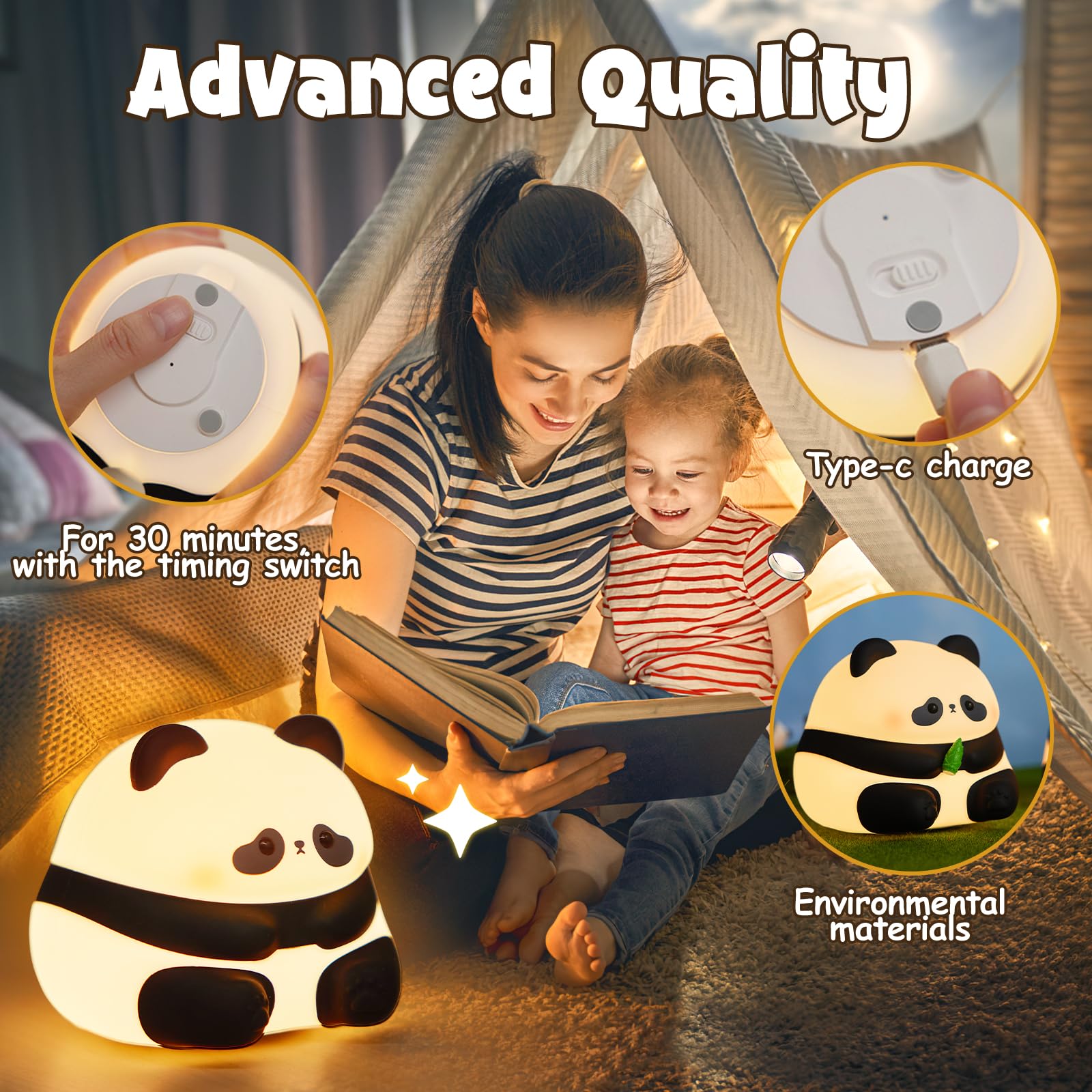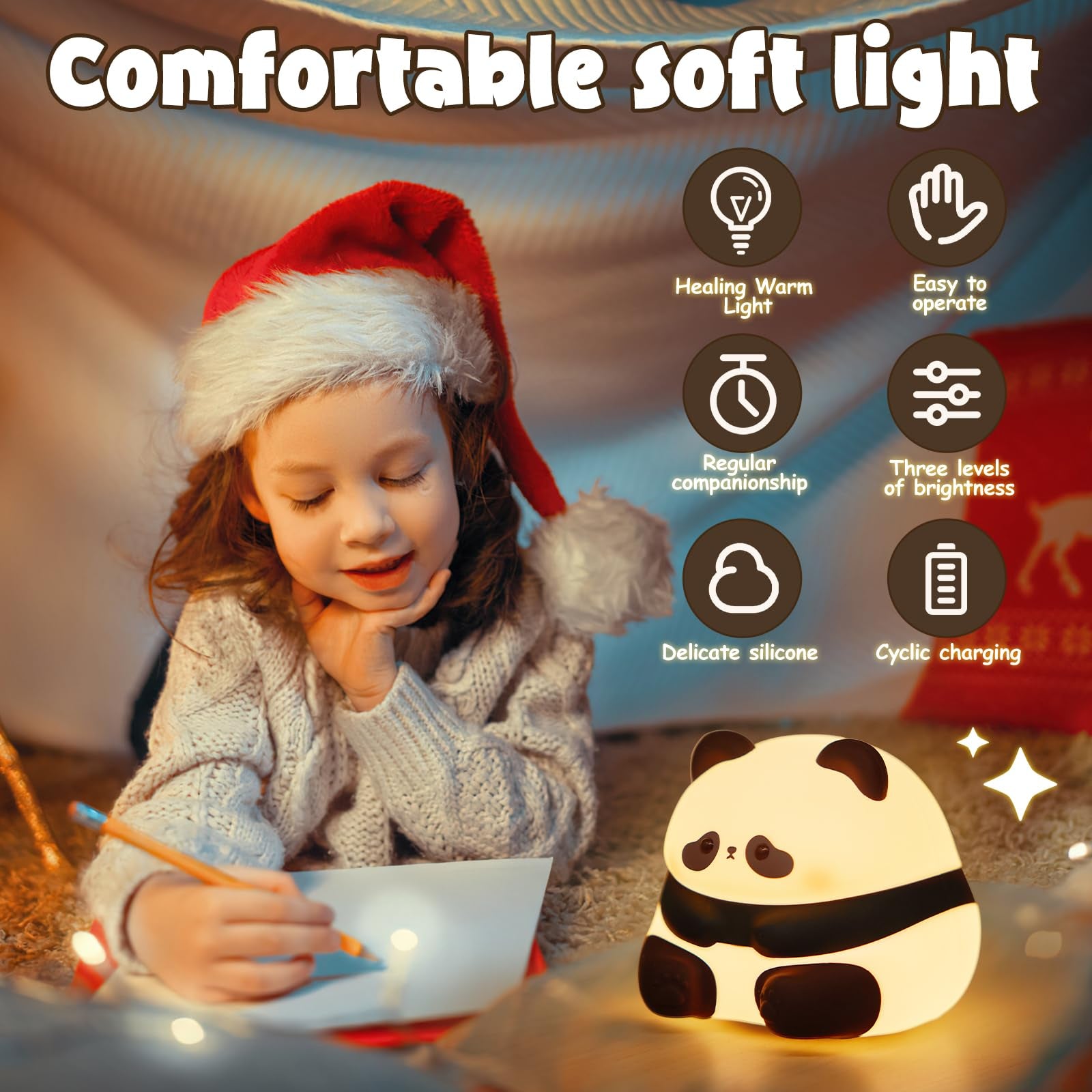 Bonita luz nocturna creativa: la luz nocturna Panda es una de las favoritas por su bonito diseño, practicidad y atractivo decorativo. Más que una práctica lámpara de noche, esta lámpara de panda es una encantadora pieza de decoración de habitación que añade un toque de fantasía a cualquier espacio. Perfecta para cualquier habitación de tu hogar, esta luz nocturna para bebé proporciona un brillo suave y cálido que crea un ambiente acogedor y acogedor. Ya sea que lo coloques en tu dormitorio, baño, guardería u oficina, mejorará el ambiente con su brillo suave, lo que lo convierte en una adición elegante y encantadora a tu espacio.
