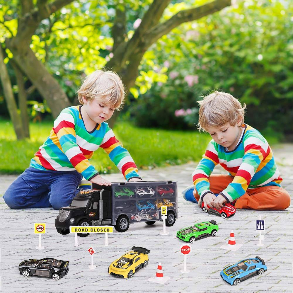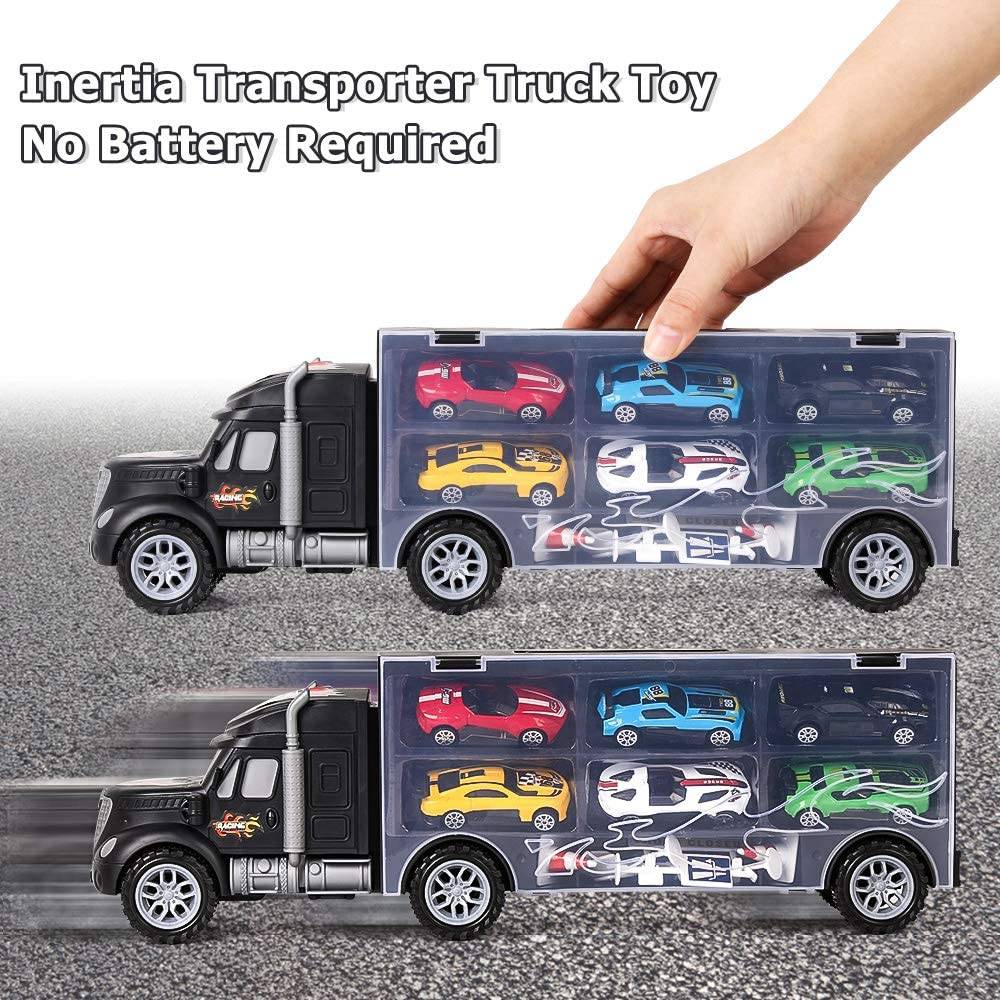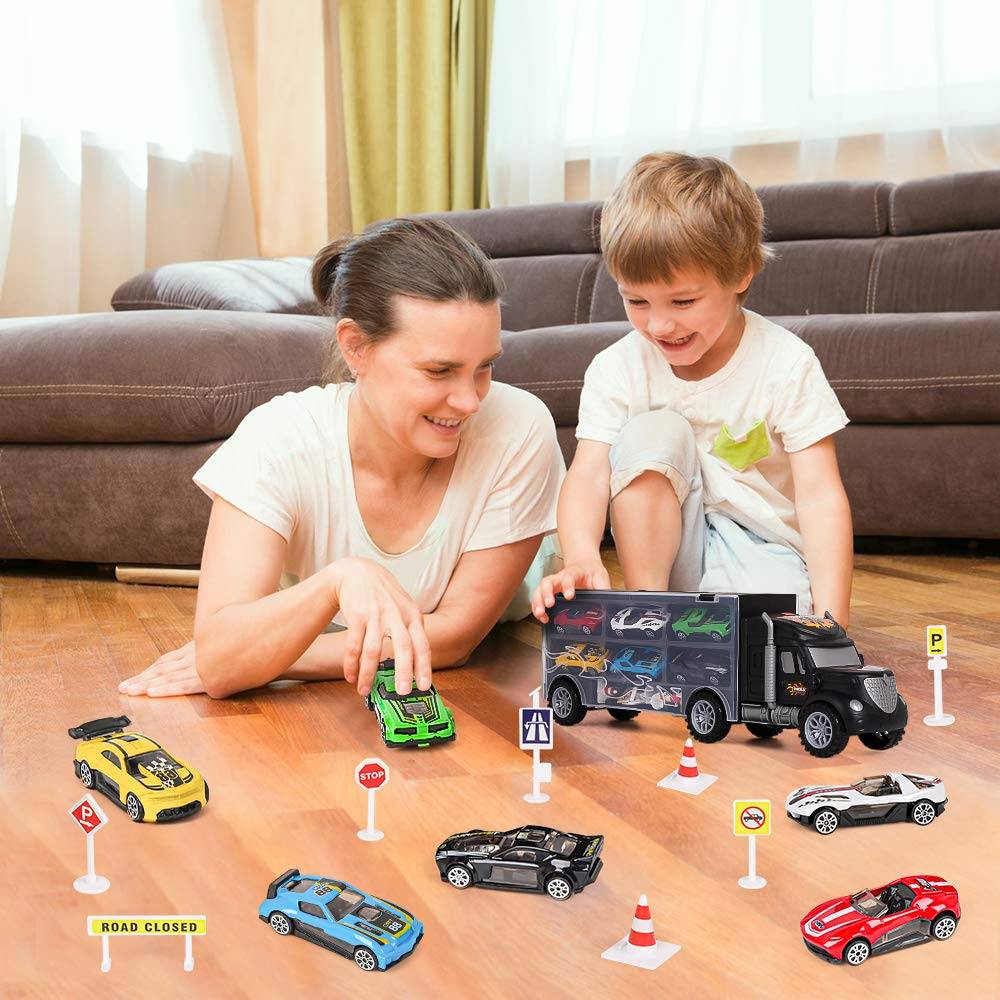 m zimoon -Juguete Camión de Transporte, Transportador Coches de Juguetes con 8pcs Accesorios y 6pcs Mini Coches
