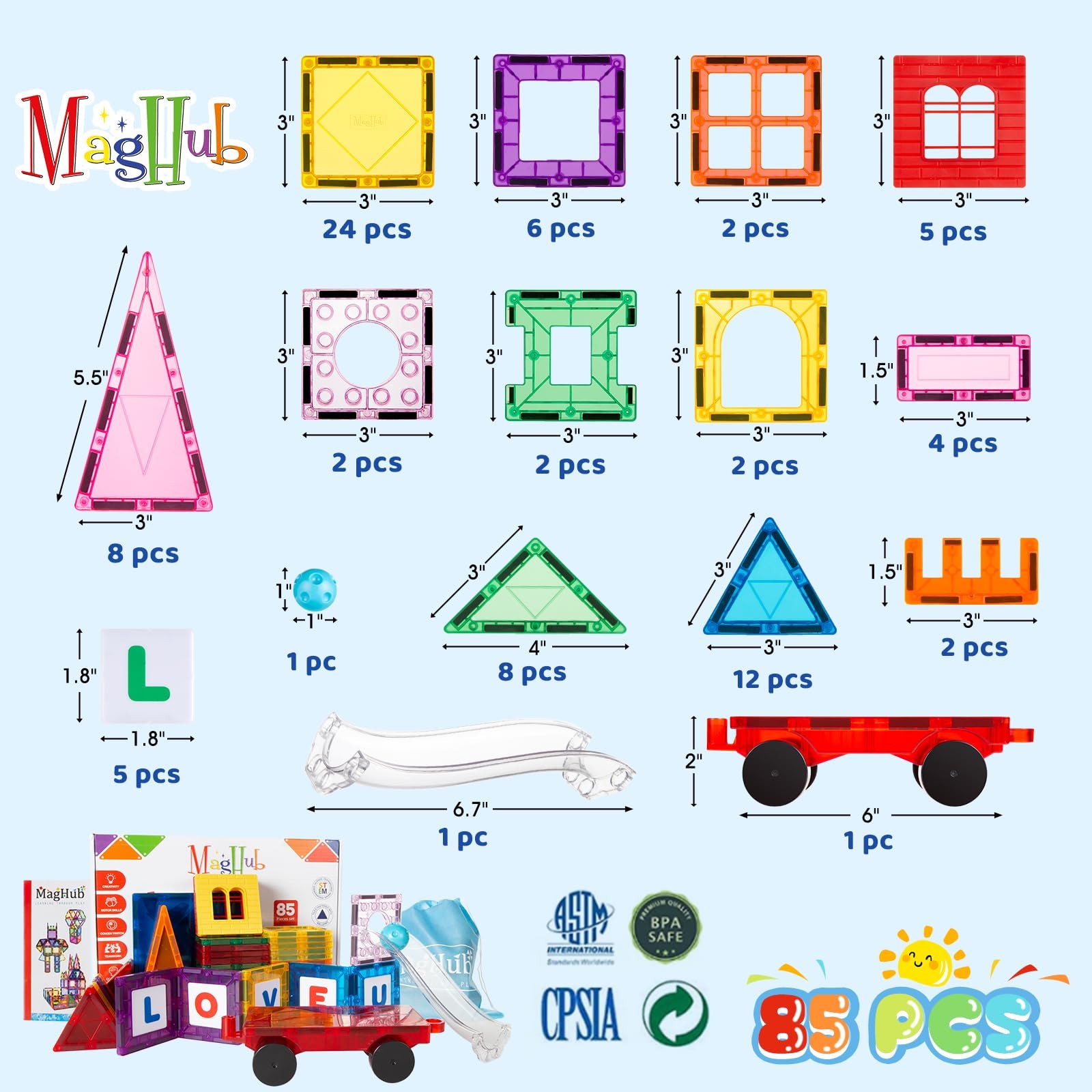 Maghub Azulejos magnéticos para niños, 85 bloques magnéticos