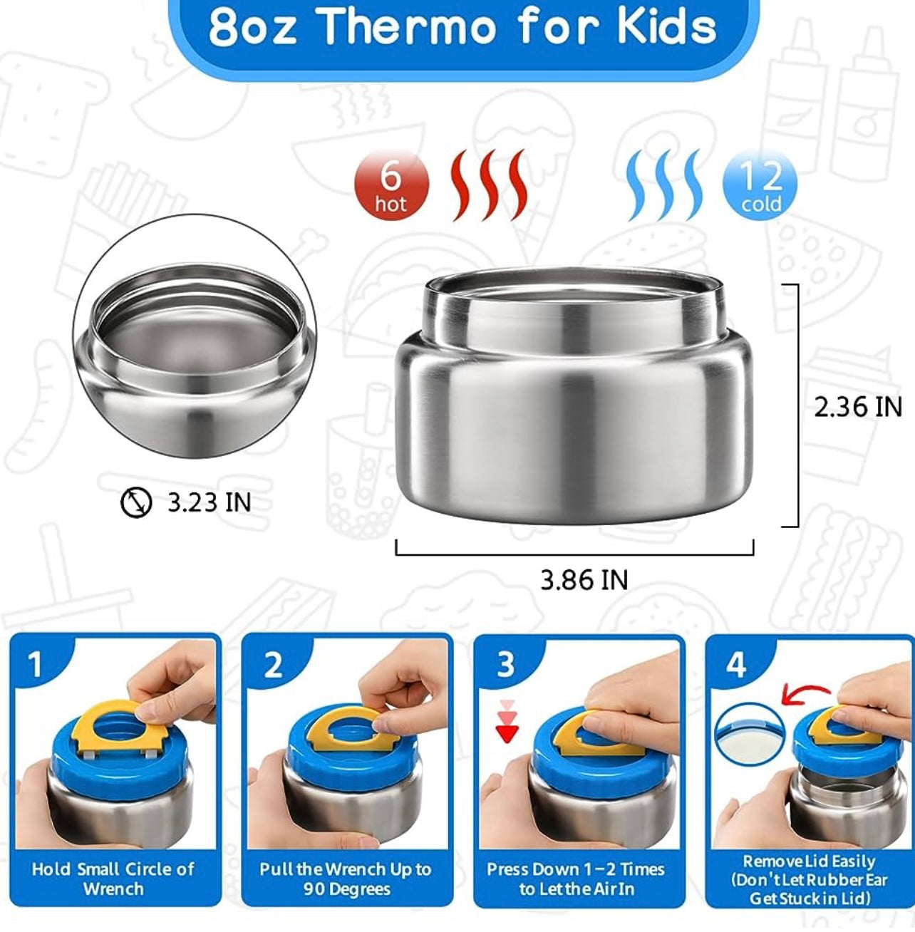 MAISON HUIS Fiambrera Bento para niños con termo para sopa de 8 oz