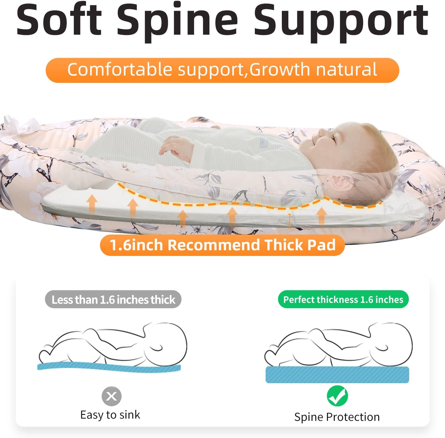【Satisface las necesidades de viaje portátiles】- Incluso la tumbona portátil para recién nacidos proporciona un cojín suave, pero el tamaño de esta tumbona para recién nacidos es de aproximadamente 31,5 x 19,6 pulgadas y pesa solo 3,5 libras (1,6 kg). la tumbona infantil está lista para llevar