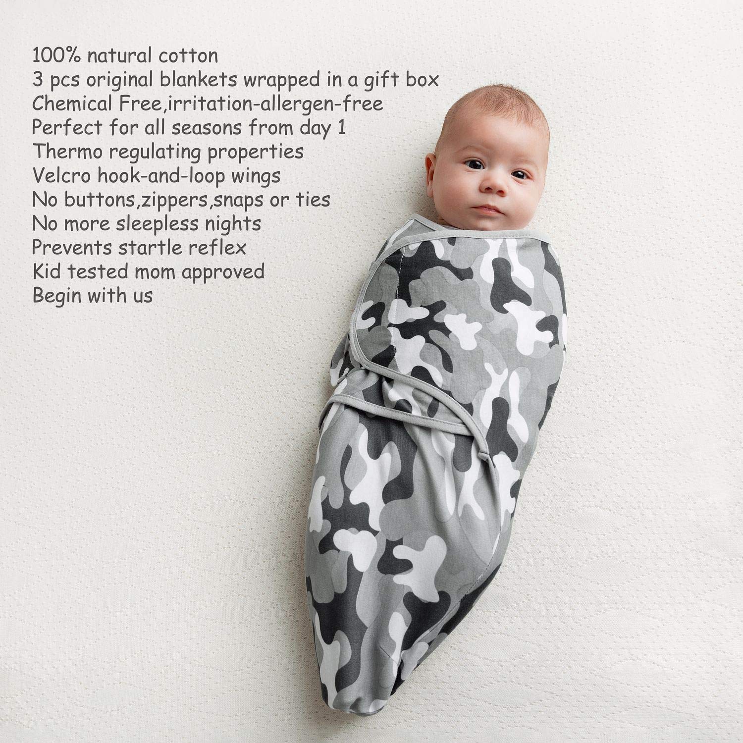 - Las necesidades primarias y esenciales aseguradas por este paquete original de 3 envolturas para envolver pañales (pequeño/mediano) que se adapta perfectamente a los bebés recién nacidos de 0 a 3 meses, 7 a 14 libras. Nuestras mantas para bebé miden 20.9 x 26.0 in, diseñadas para bebés de hasta 26.0 in de altura. Los sacos de dormir ajustables tienen alas suaves que se sujetan de forma segura con velcro, accesorios de velcro para crear un ajuste perfecto