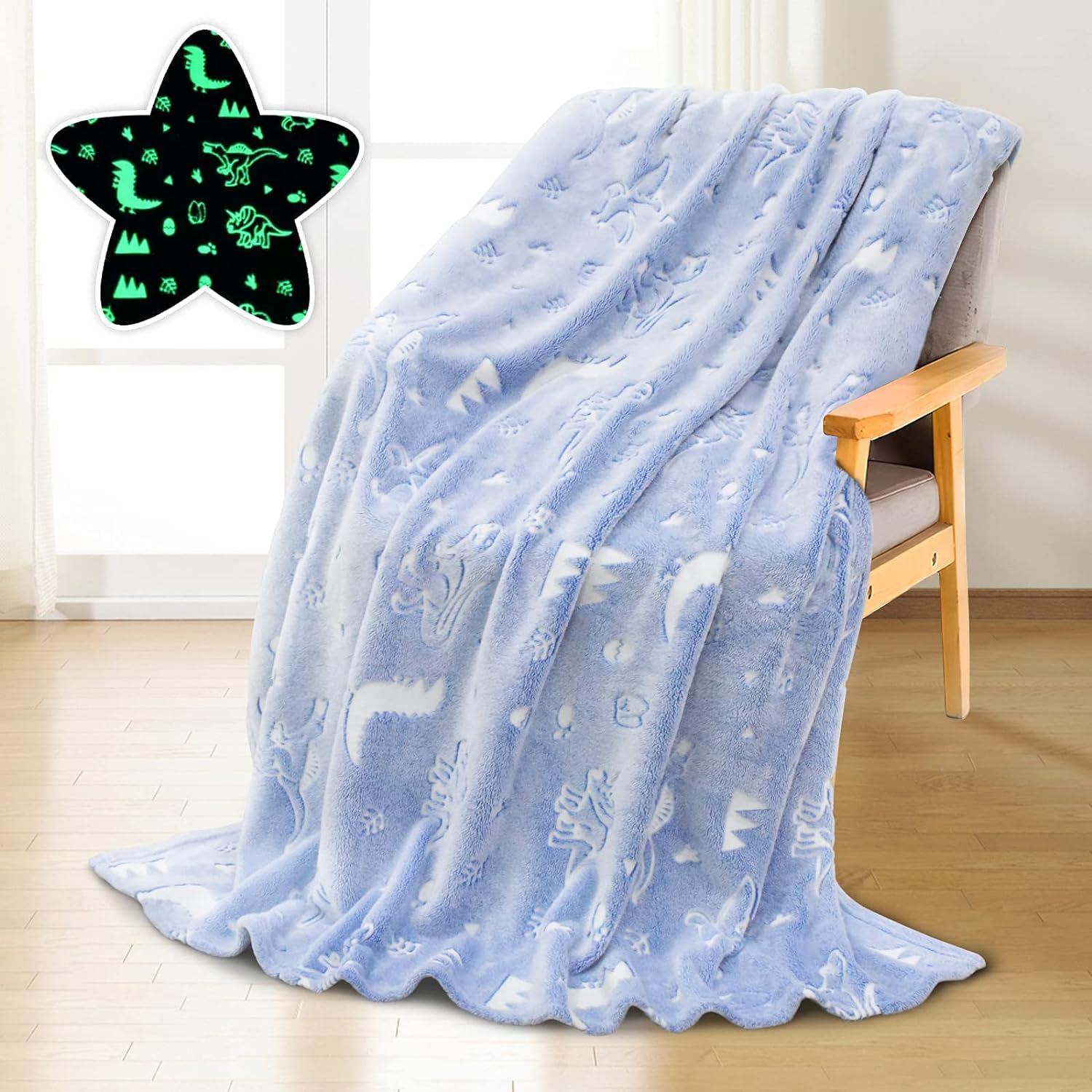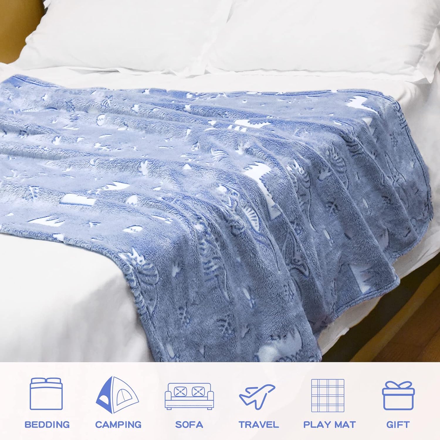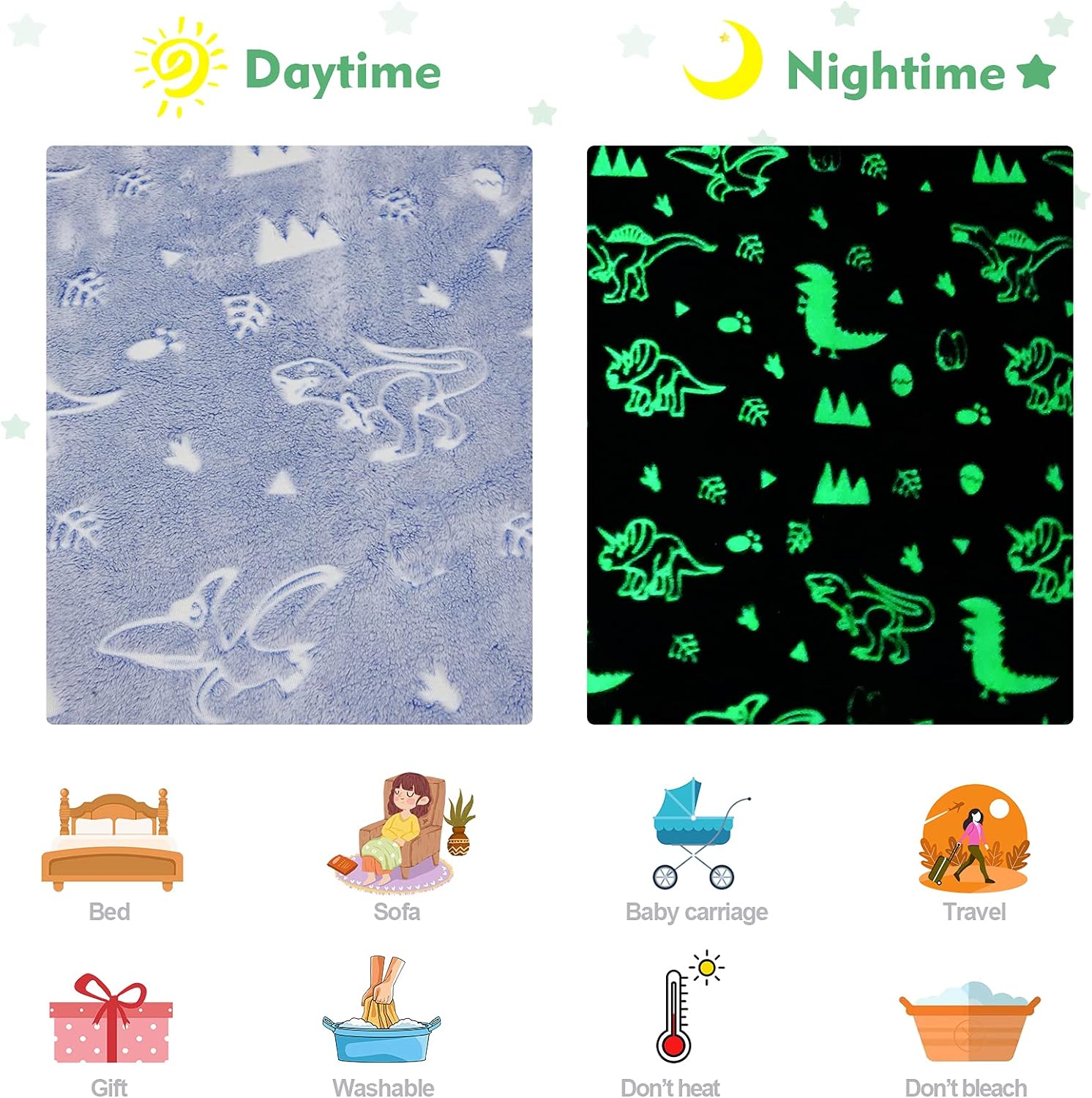 Manta de dinosaurio que brilla en la oscuridad para niños de 40 x 50 pulgadas