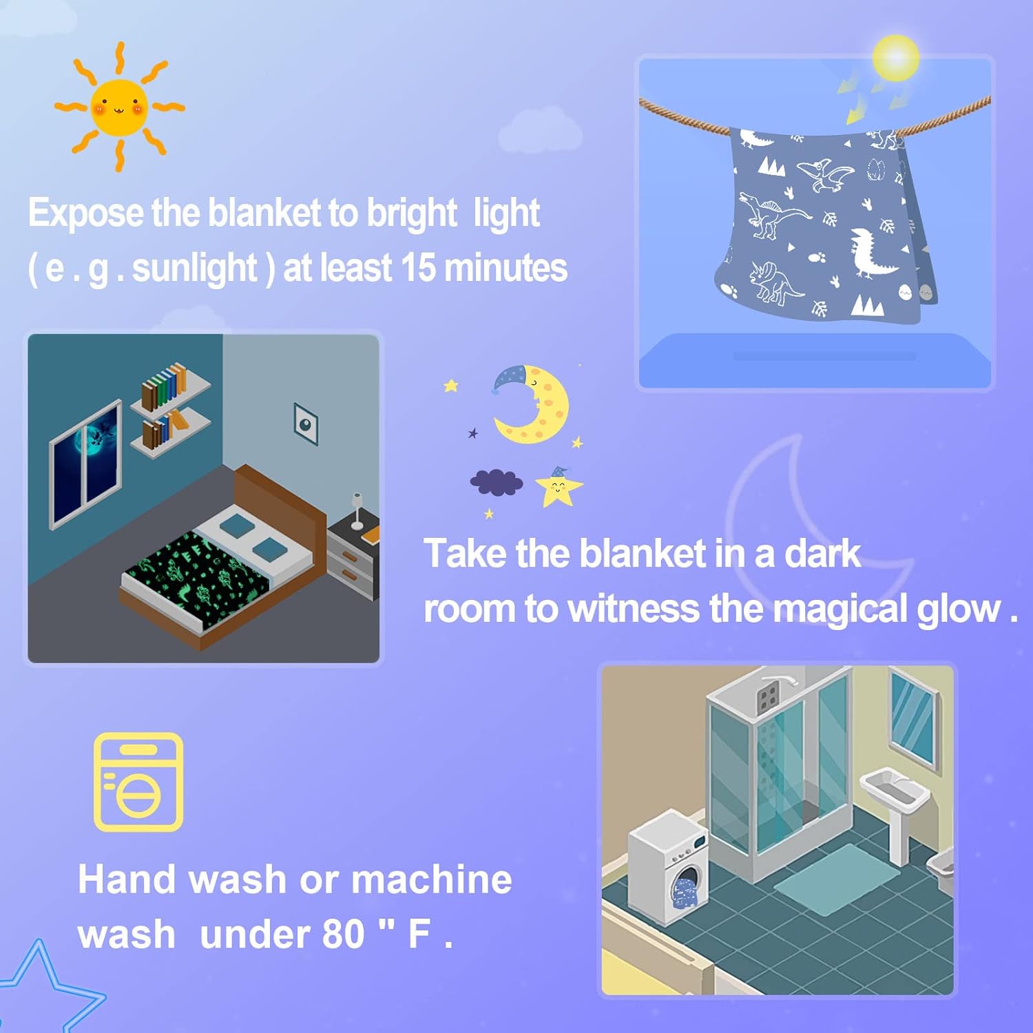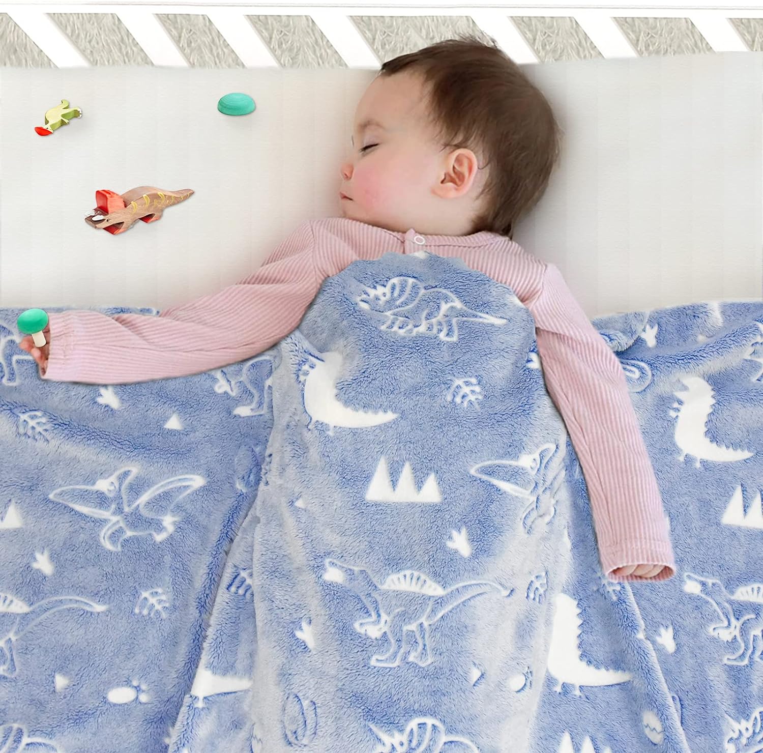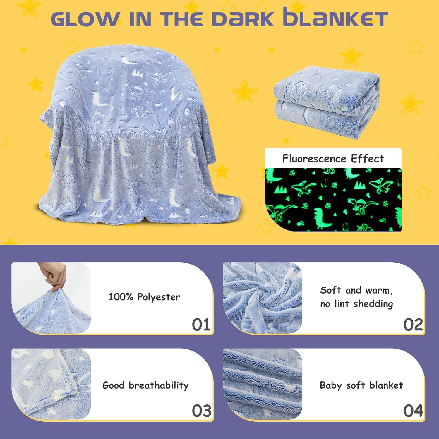 Manta de dinosaurio que brilla en la oscuridad para niños de 40 x 50 pulgadas
