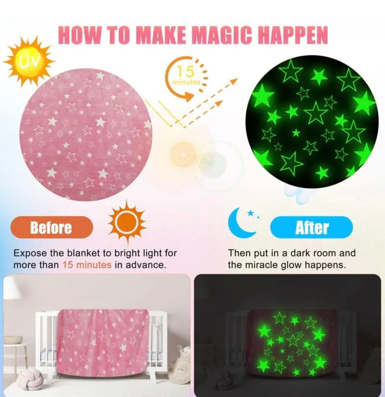 Manta jeozuf Glow in the Dark Throw para niños 50""x60""