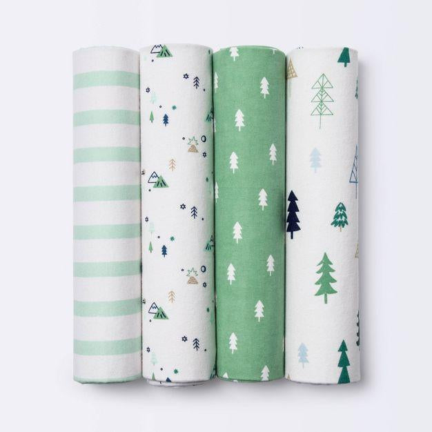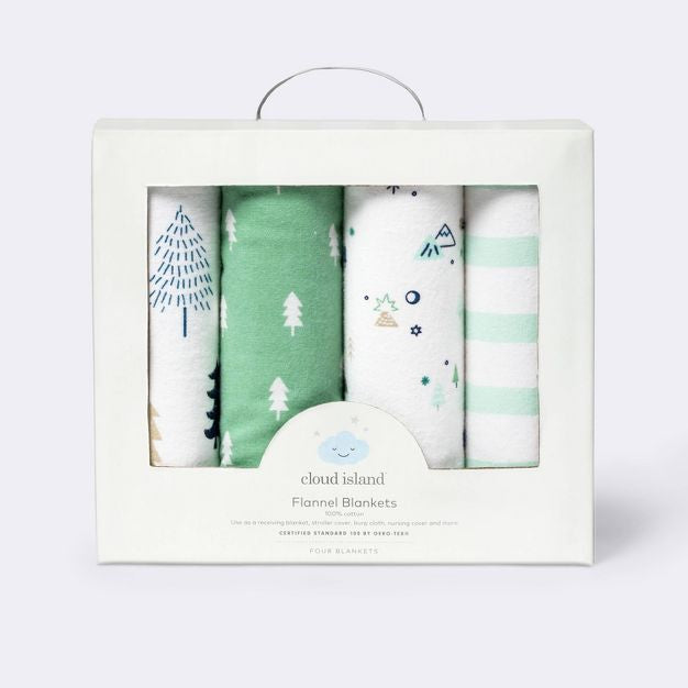 Mantas de franela para bebés Trees - Cloud Island Green 4pk