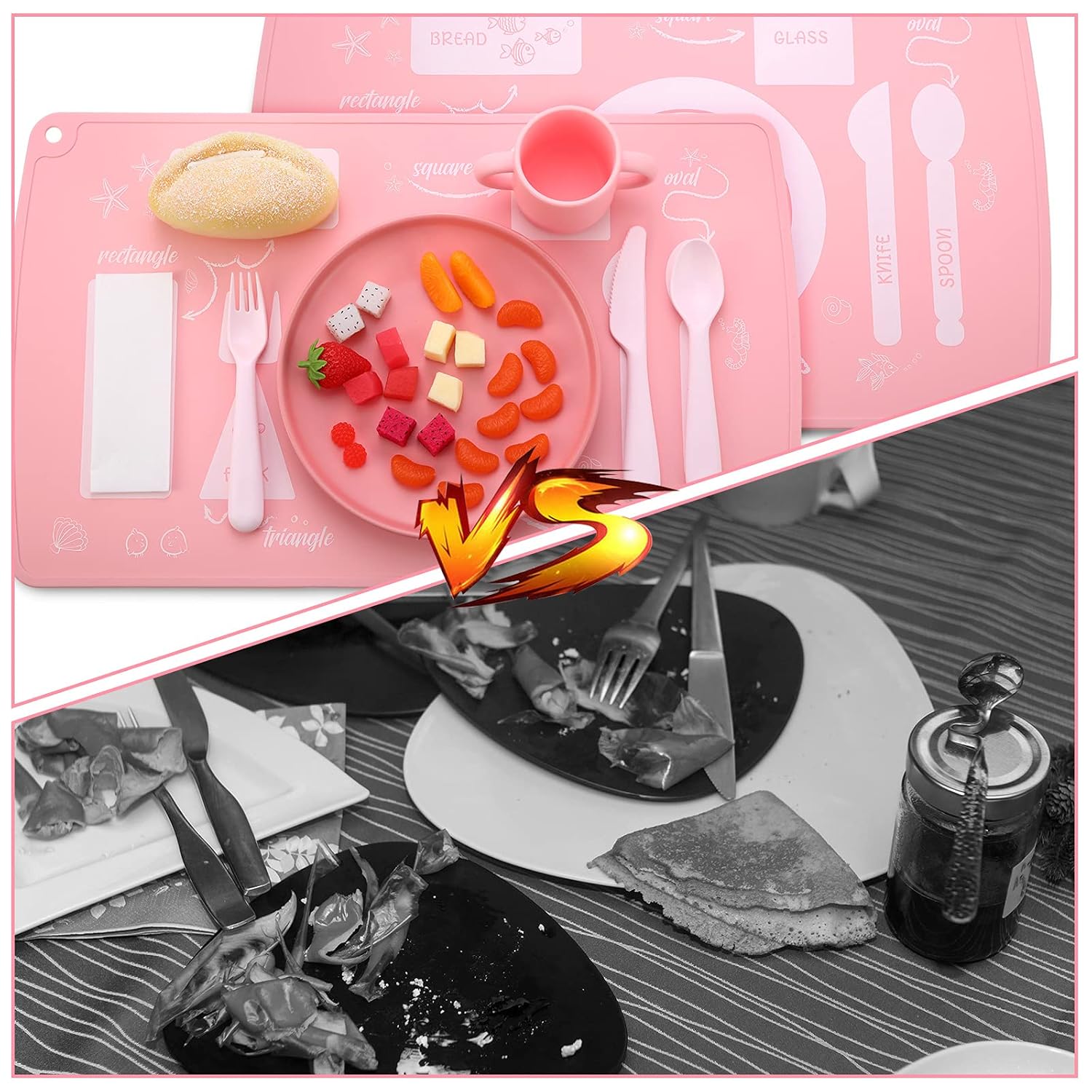 Mantel individual de silicona Montessori para niños, 1 ud